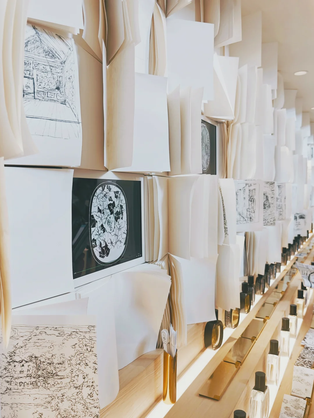 ??调香师的画室:以画室布局呈现,可轻捏香氛瓶樽闻香,挑选全景试香卡收入“灵感手册”