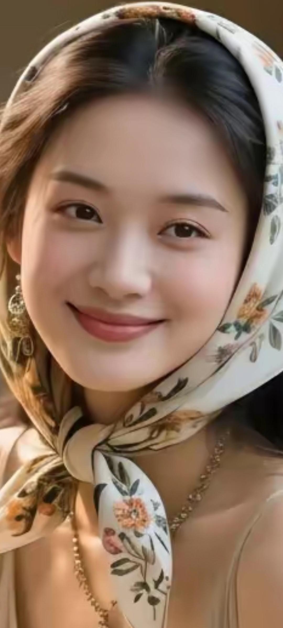 温柔微笑,花色头巾,优雅气质,完美搭配