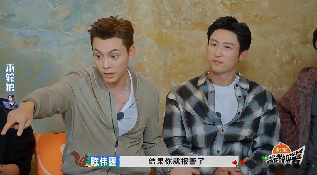 《现在就出发》黄景瑜误认为陈伟霆是狼时,陈伟霆的反应太搞笑了。网友评价:陈伟霆想报警结果发现出警的是黄sir。