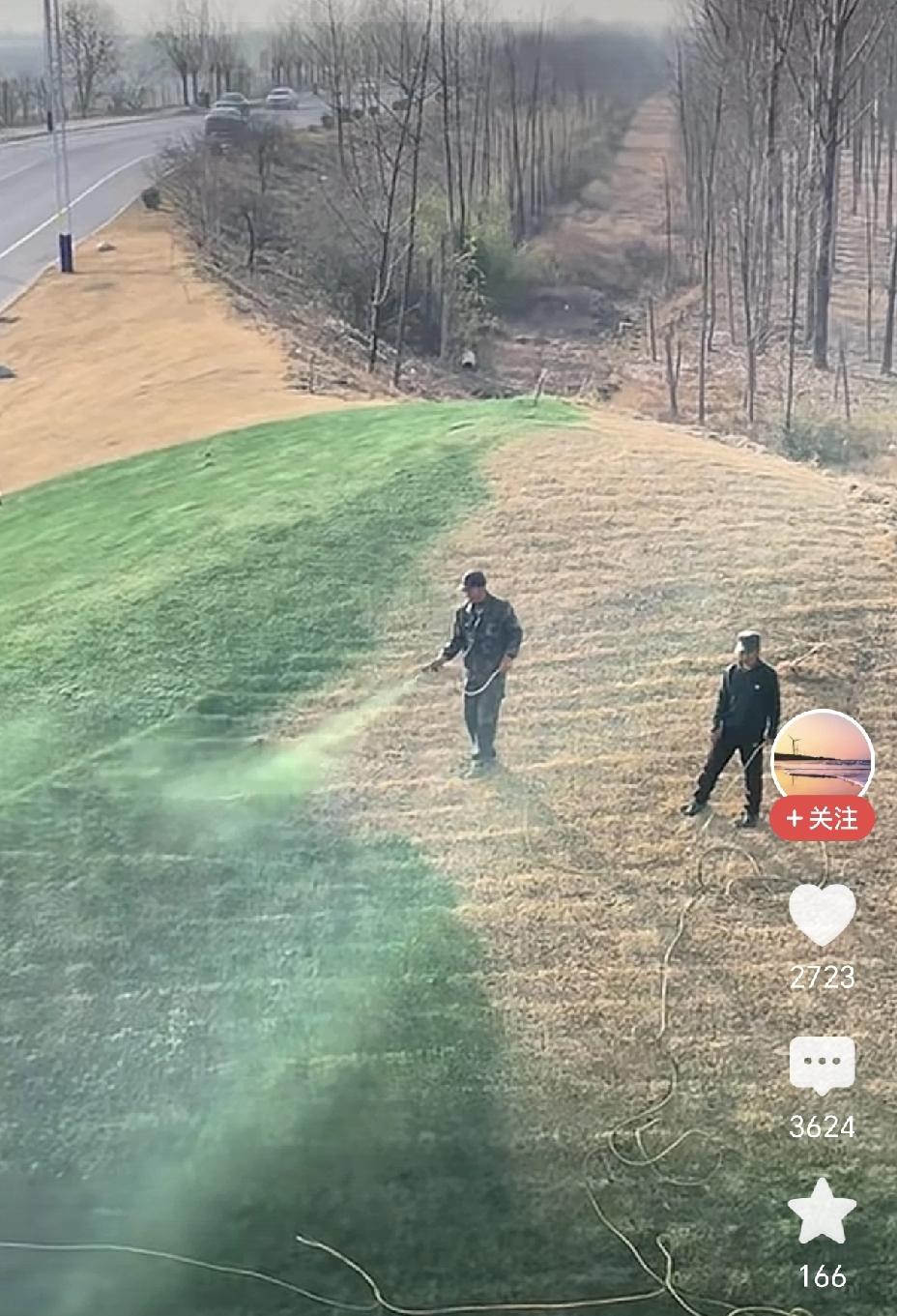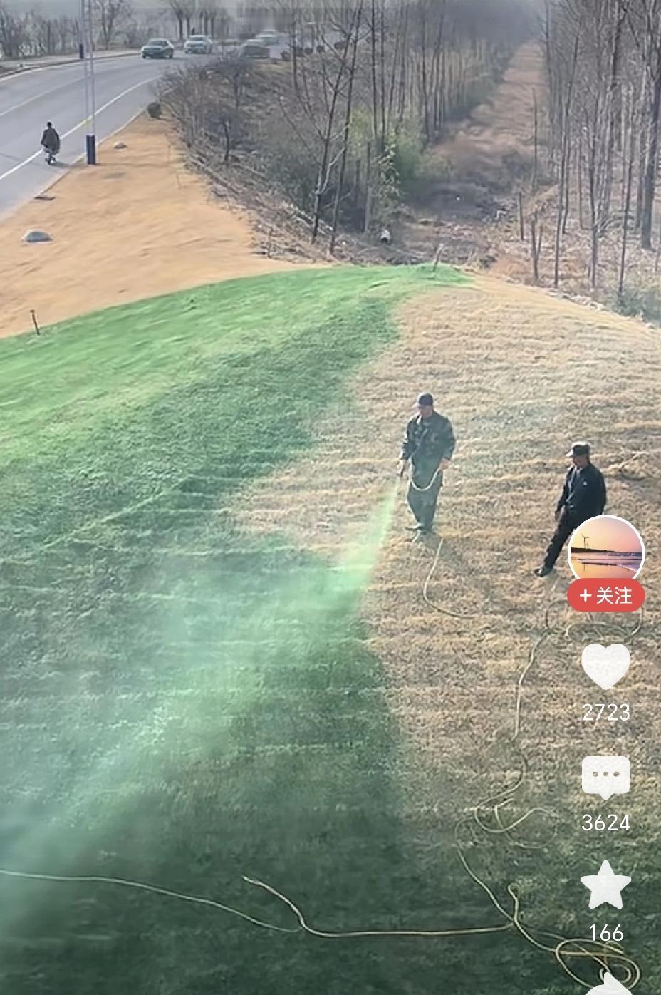 草坪没草,一喷就有,哎! 这种形式主义作风,何时才能消失?