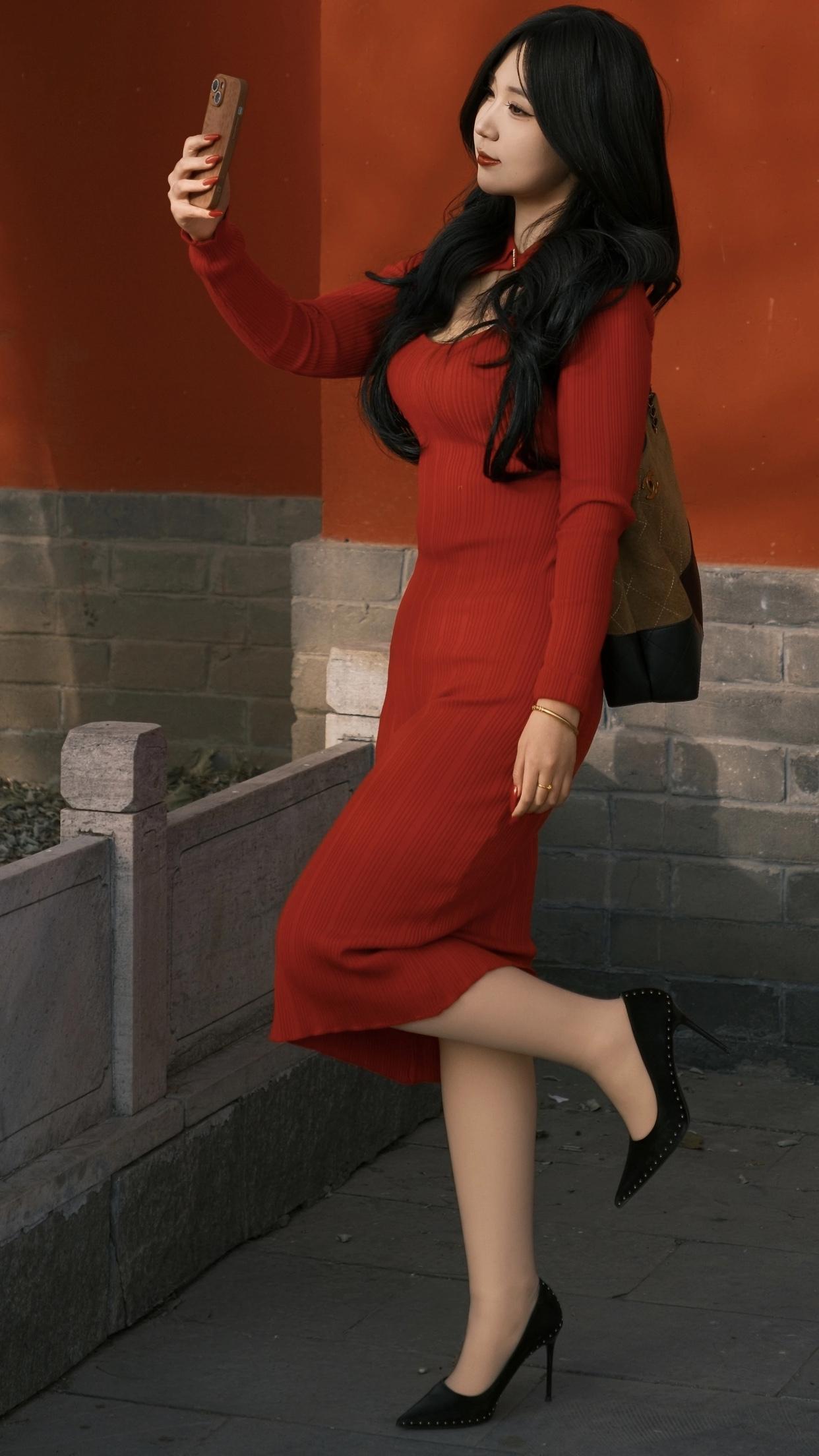 分享你见闻过的绝色美人!复古红裙搭配黑色高跟鞋,优雅气质满分!