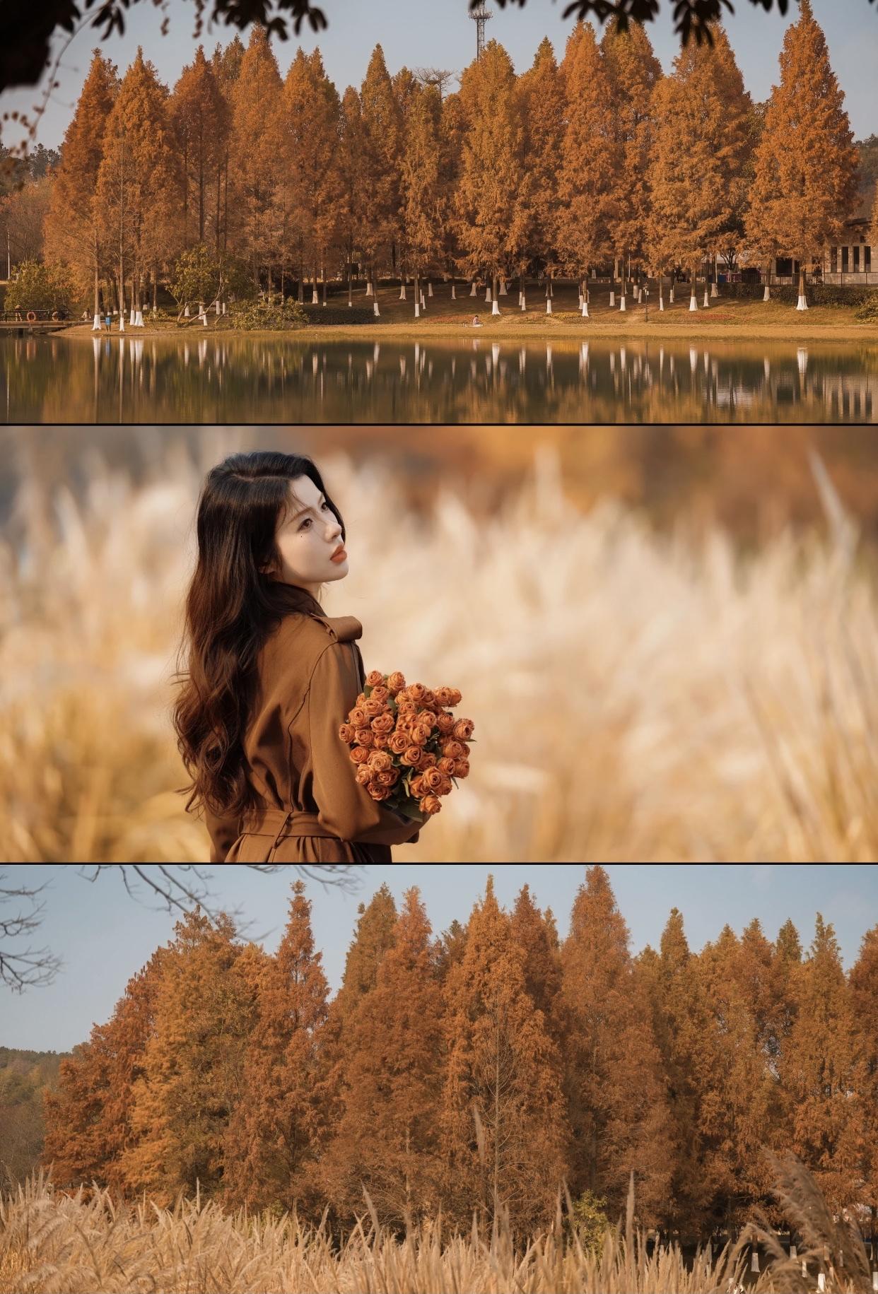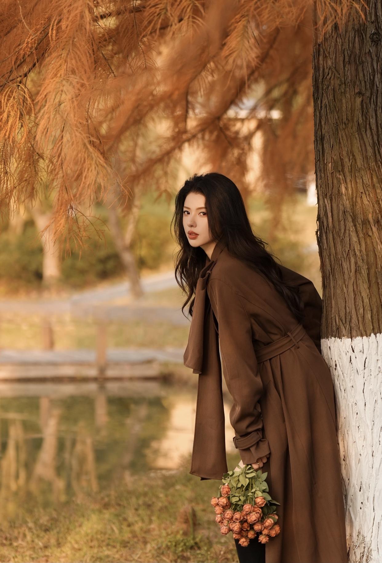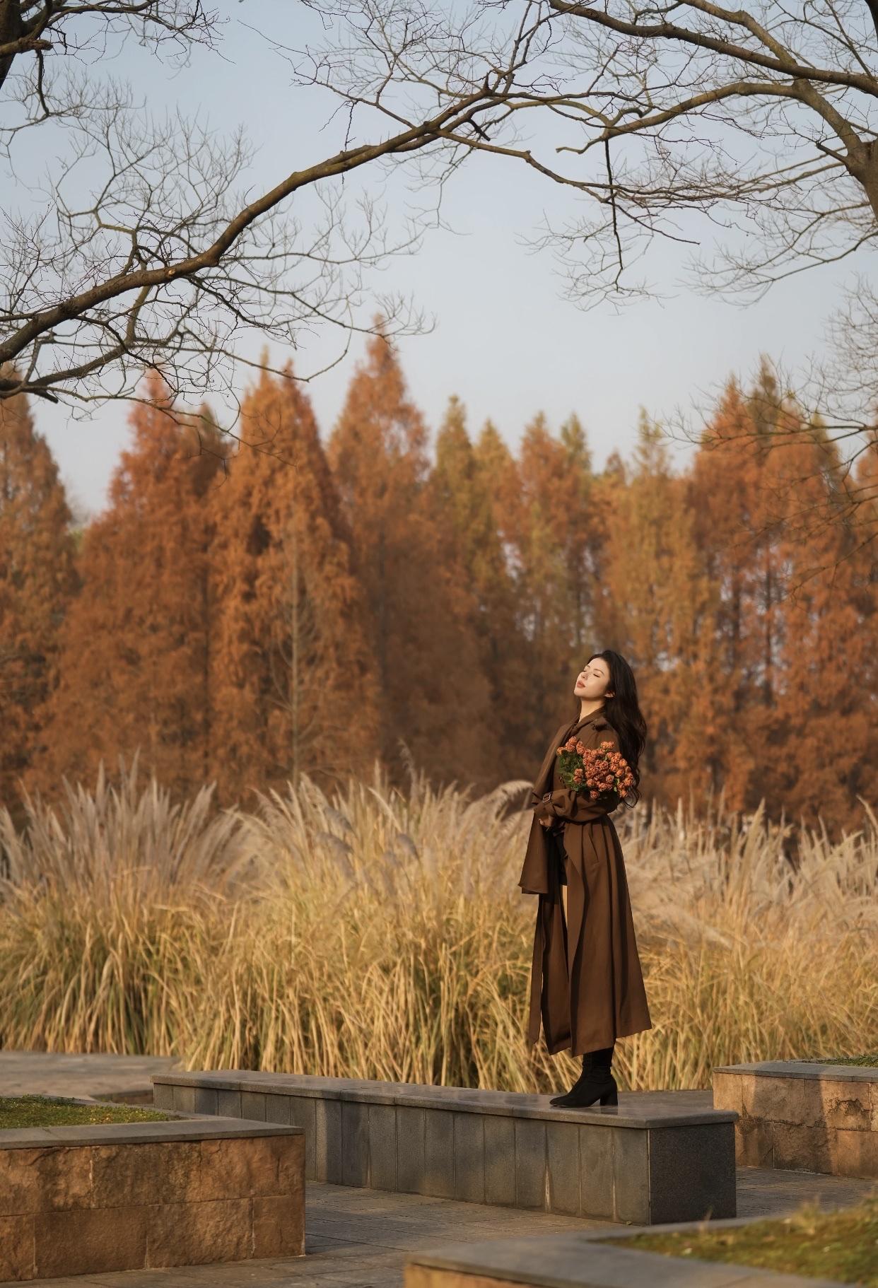 什么样的穿搭可以成为气质女神?秋日暖阳下,优雅女子轻抚发丝,漫步在金黄的树影间。