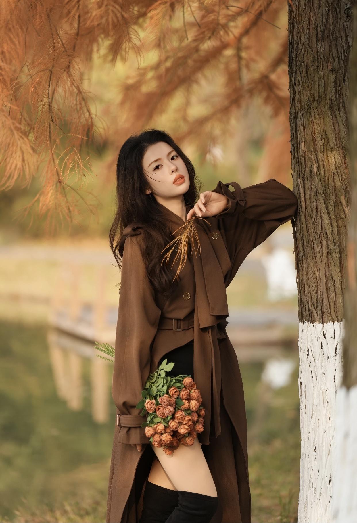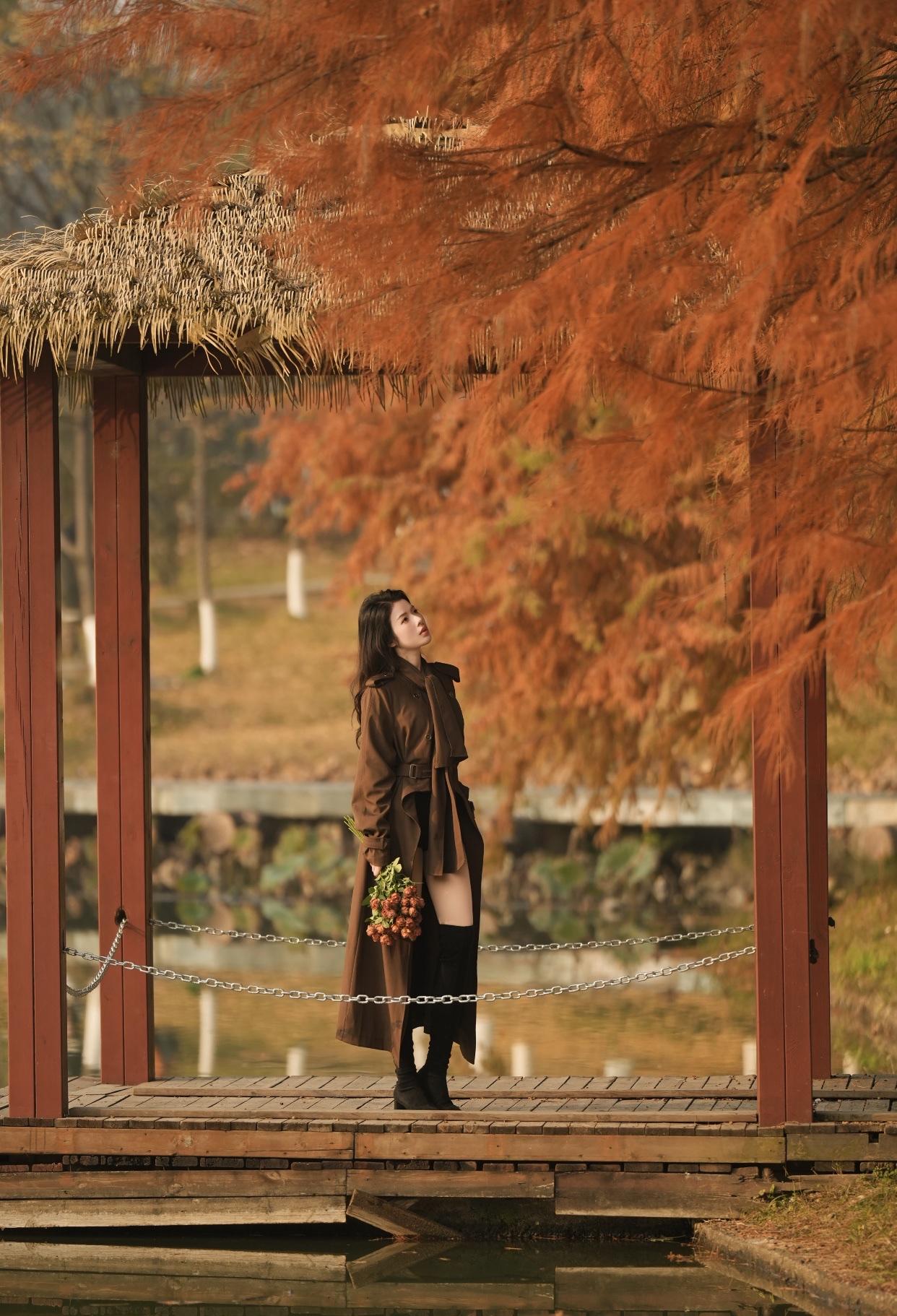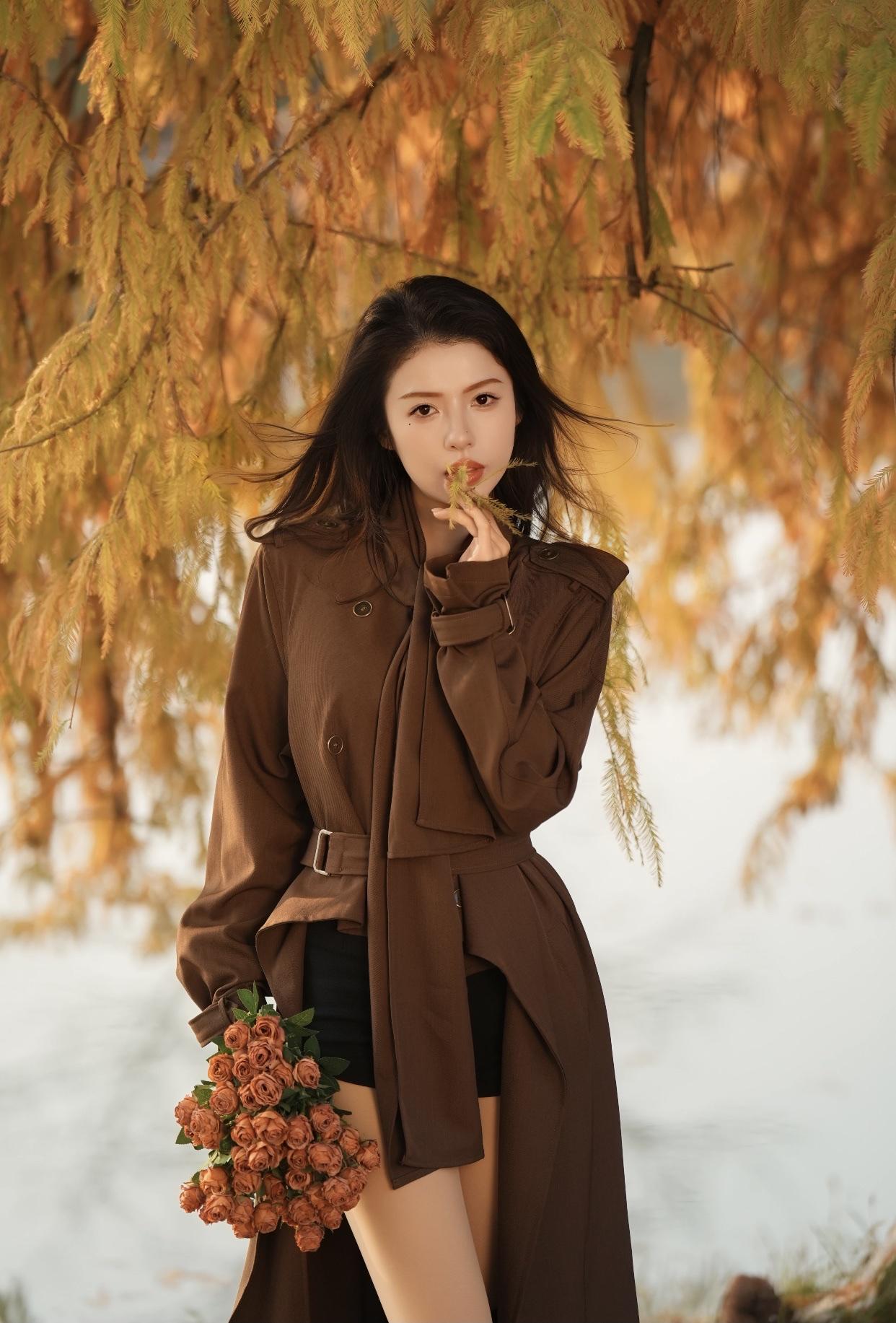 什么样的穿搭可以成为气质女神?秋日暖阳下,优雅女子轻抚发丝,漫步在金黄的树影间。