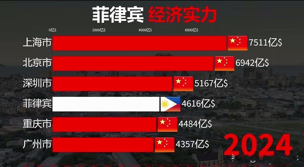 菲律宾跻身中国一线城市,不可小觑。菲律宾是东盟的刺头,处处与中国作对。作为美国的狗腿子,菲律宾在南海争端,特别是黄岩岛处处捣乱搞事情。别以为他只是捣乱,他的经济实力已经跻身我国4大一线城市的第三名,他很可能给我们造成很大的麻烦。菲律宾的政客军事专家对中国几乎都是不友好的,所以当菲律宾发生台风地震的自然灾害时,我国也只能口头标识慰问。作为美国的狗腿,一律得不到中国的关照,这将成为常态。
