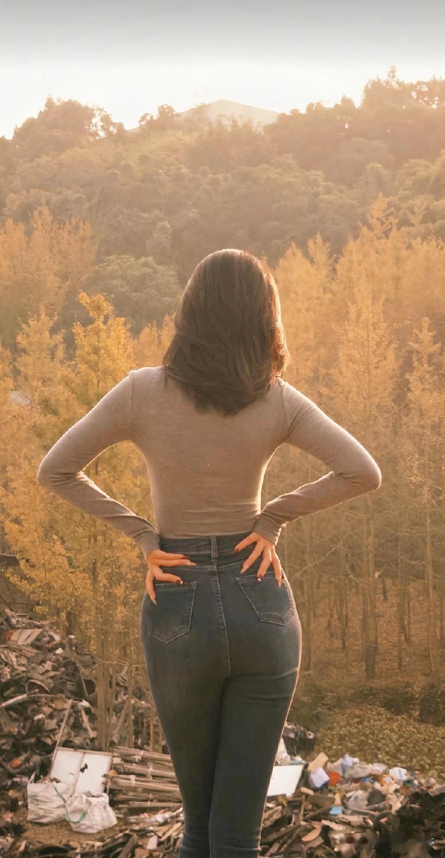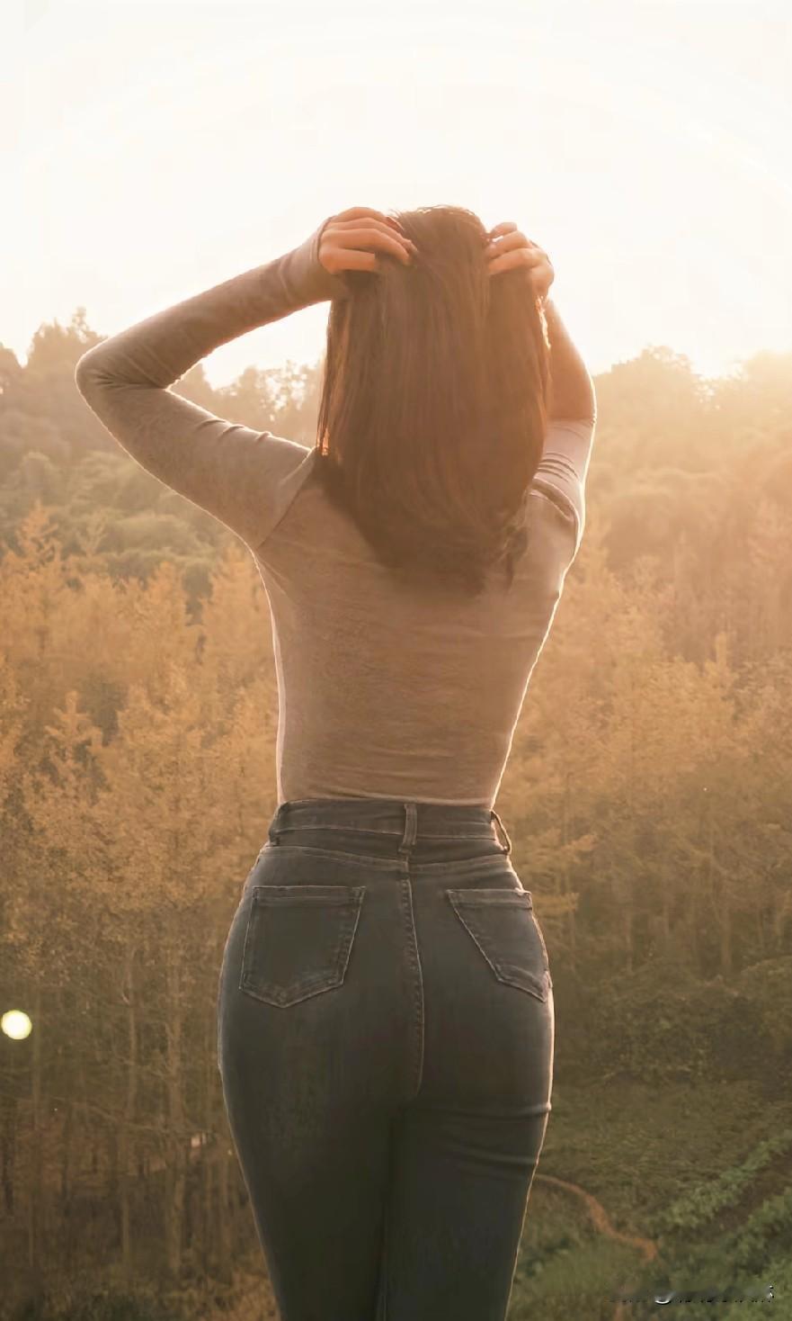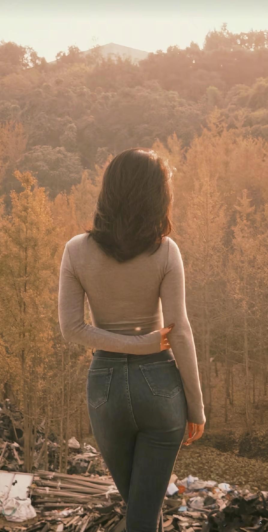 秋日森林中的沉思时刻,背对镜头,感受自然的宁静与美好。