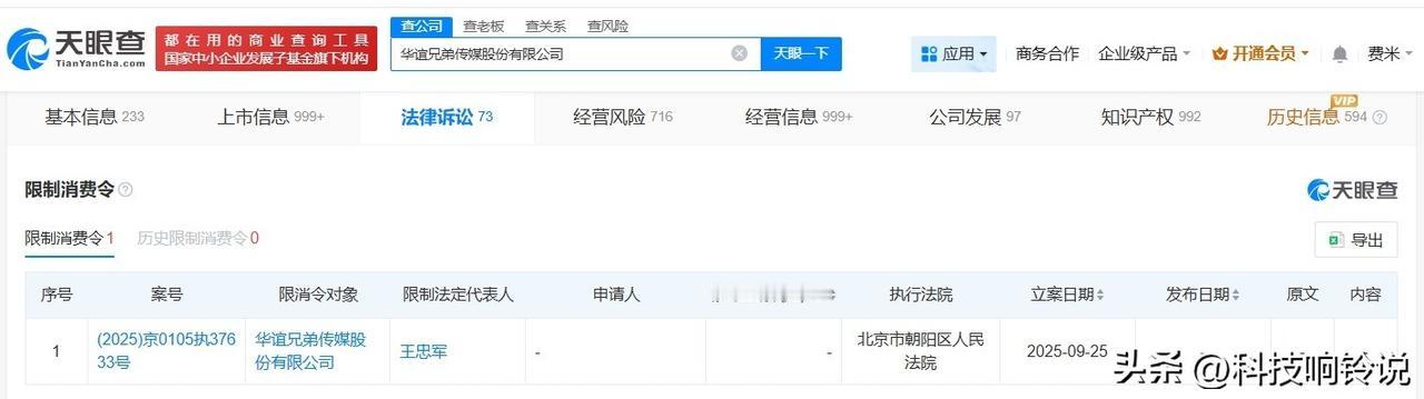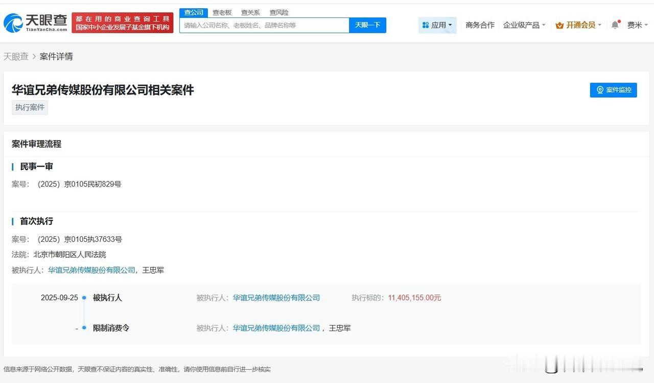 【华谊兄弟及王忠军被限消华谊兄弟因1140万案款被限消王忠军因1140万案款