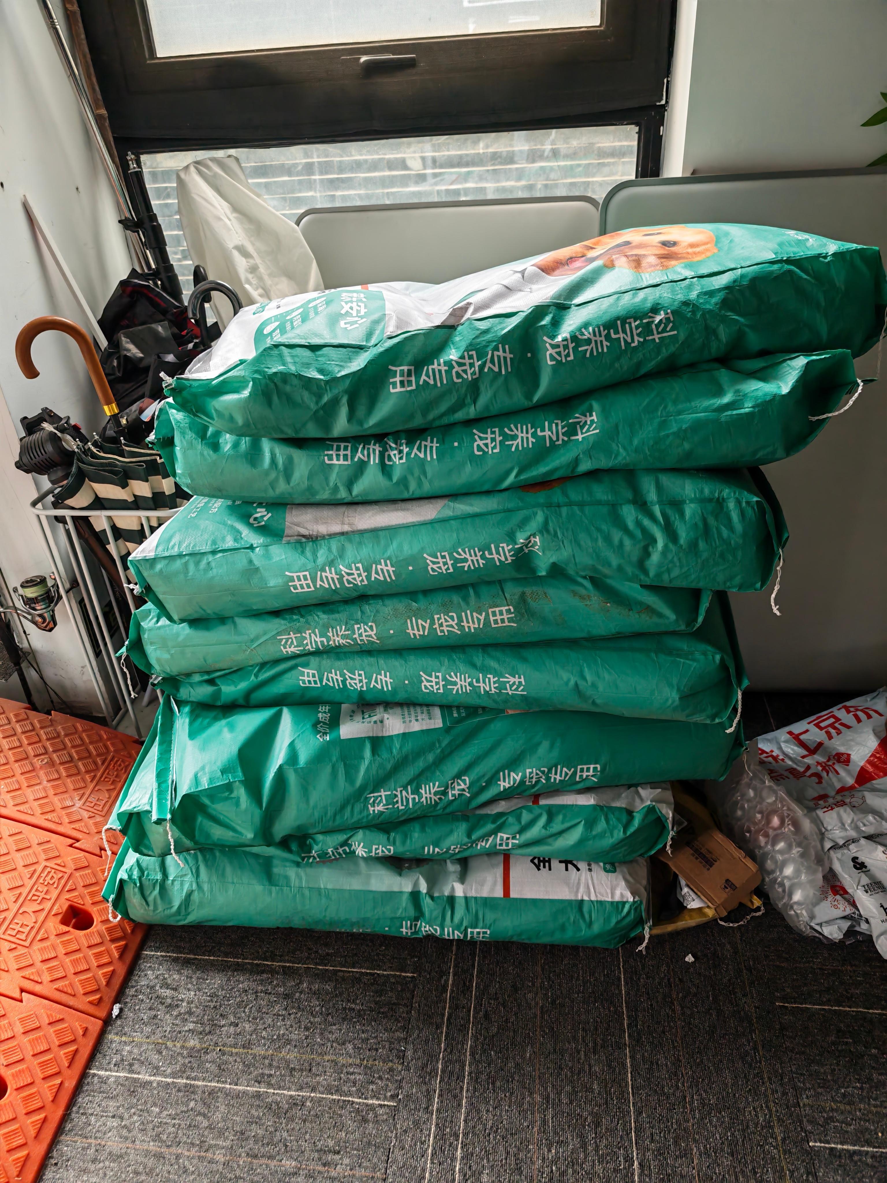 早上京东快递小哥给我打电话,说你这个快递可能上不了门啊,没有电梯…我说嗯?是有什么困难吗?为什么上不了门,后来快递员说我想想办法吧原来是我媳妇给我家狗子买的狗粮,买了 240 斤现在想起来快递员的话,没有电梯是有点困难