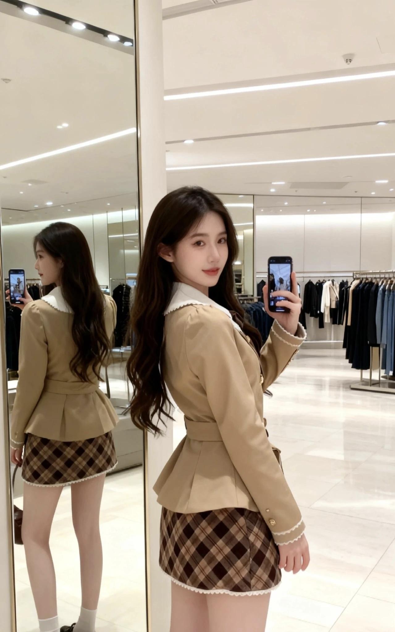 试衣间的温柔氛围感,焦糖系穿搭也太戳心啦~