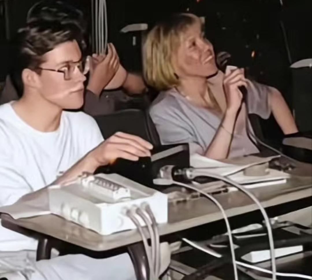 学生时代的马克龙和老师布丽吉特的合照:马克龙,戴着眼镜,白色背心,神情专注。布丽