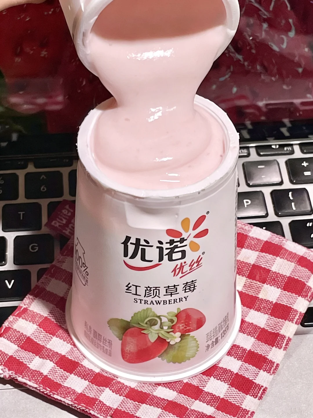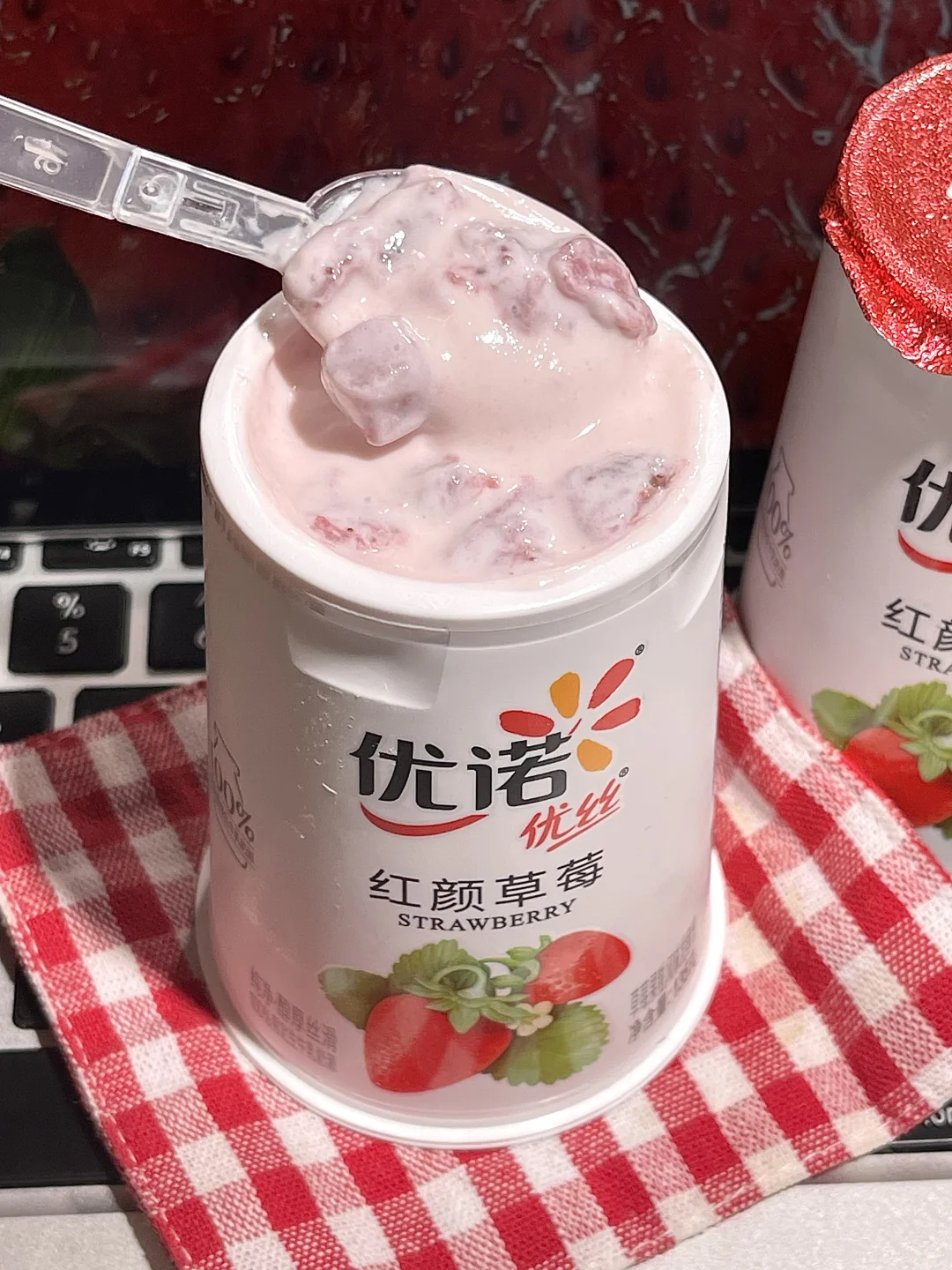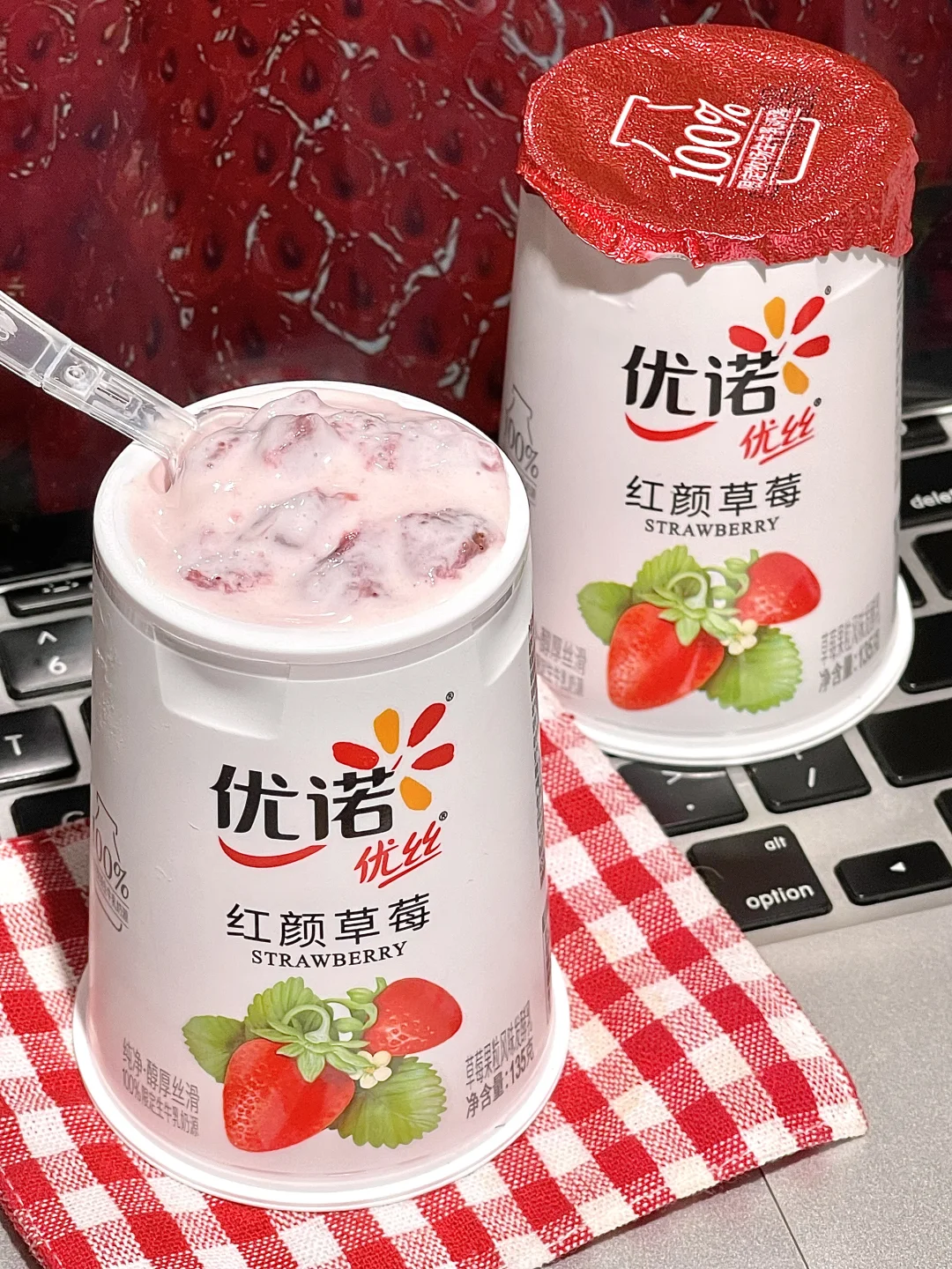 谁懂啊…我真的好爱这个优诺优丝红颜草莓酸奶! 跟之前吃的草莓味完全不一样[捂脸R][捂脸R] 质地真的绝了,稠得像微微融化的冰淇淋 入口绵密扎实,一抿就在舌尖温柔化开 醇厚感和丝滑感平衡得刚刚好~不会干巴! 关键是里面的草莓果肉多到感人! 大颗的红颜草莓切块又软又嫩~ 酸酸甜甜的果香和浓醇奶香交织在一起 清新不腻,回味都是满满的幸福感☺️ 早上配片奶酪吐司就是健康又满足的一餐, 100%生牛乳发酵的,可以放心吃~ 我现在每天不炫两瓶都难受🥹🥹 喜欢奶味浓郁、口感醇厚、大颗果粒的宝子冲!