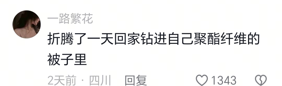 折腾了一天,回家钻进自己聚酯纤维的被子里