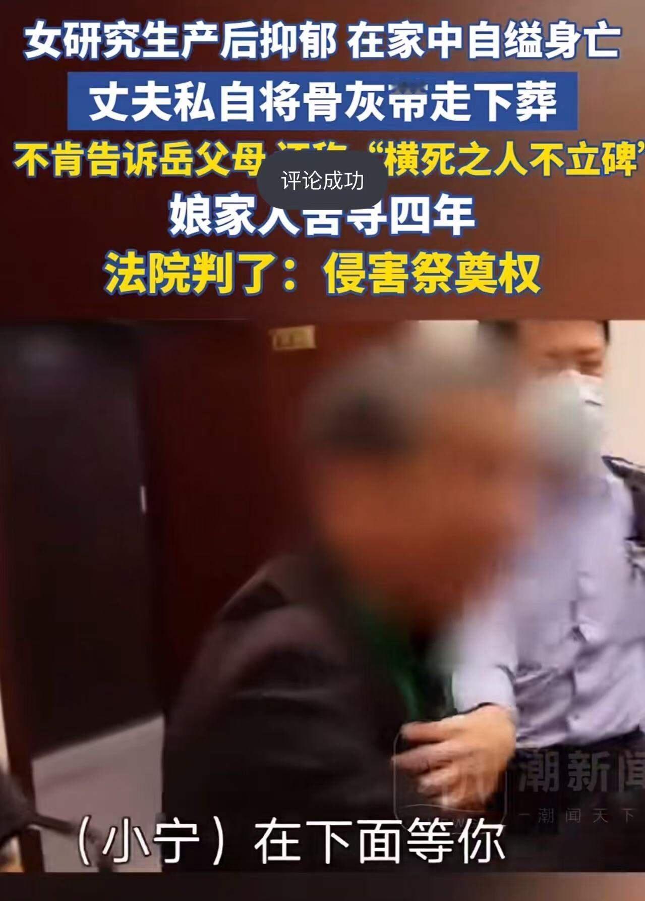 女研究生产后抑郁,在家中自缢身亡,丈夫私自将骨灰带走下葬,不肯告诉岳父岳母,还称“横死之人不立碑”!娘家人苦寻四年,现在法院判了:侵害祭奠权! 在这个快节奏、压力不断攀升的社会中,家庭、责任与情感仿佛成了一场永无休止的拉锯战。她,一个普通的女研究生,怀揣梦想走进了学术的殿堂,却在生产后陷入了抑郁的深渊。那段曾经充满希望的时光,变成了她生命中最黑暗的阴影。最终,她选择了用生命来逃避那无法承受的痛苦,用自缢结束了自己短暂而又充满挣扎的生命。 然而,她的离去,并没有迎来一片哀悼的温情,反而引发了一场家庭伦理的巨大风暴。丈夫在她去世后,竟然私自将骨灰带走,拒绝告诉岳父岳母,甚至还声称“横死之人不立碑”。这背后,是责任的缺失、情感的扭曲,还是对生命最基本的尊重?这样的行为,无疑触碰了人性的底线,也激起了社会的深层次反思。 四年的苦寻,娘家人心如刀绞,他们渴望为逝去的女儿留下一份最后的祭奠与记忆,却被丈夫的冷漠与偏执所阻隔。这不仅仅是一场家庭内部的纷争,更是一场关于“祭奠权”的法律较量。法院的判决,终于为她争取到了应有的尊重——侵害了她的祭奠权,这是对生命的尊重,也是对人性底线的捍卫。 这起事件的背后,折射出许多现实问题:现代社会中,家庭结构的变迁、情感的裂变、尊重与责任的缺失。我们是否在追求物质的同时,忽略了对生命、对逝者的最基本尊重?是不是在快速的生活节奏中,逐渐淡忘了那些在关键时刻给予我们温暖与陪伴的人? 更令人深思的是,面对生命的终结,我们是否还应坚持那份人性中的善良与尊重?每一个逝去的生命,都值得我们用心去铭记、去祭奠。这不仅仅是法律的胜利,更是良知的呼唤。 在这个故事中,我们看到了悲剧,也看到了希望。希望每一个家庭都能在风雨中坚守责任与爱,尊重生命、尊重逝者,懂得在失去时给予彼此宽容与理解。因为,真正的尊重,不仅体现在法律上,更体现在我们每个人心底那份对生命的敬畏与热爱。 让我们用这起案件,反思我们对亲人、对生命的态度。或许,这正是这个时代最需要的正能量——用善意、用尊重,去温暖这个世界的每一个角落。硕士离世 安徽女去世 婚前离世 女子病逝 湖南婚前坠亡 学生自缢 独身女子病逝