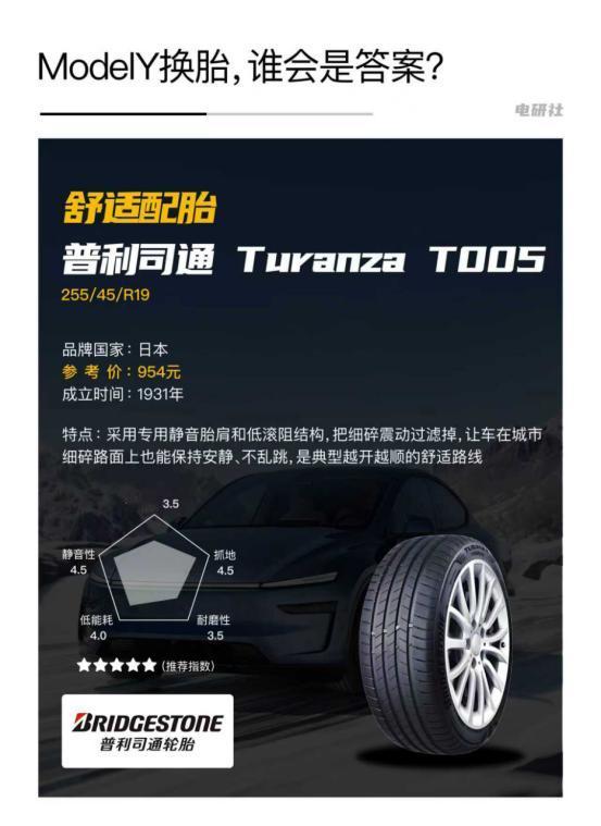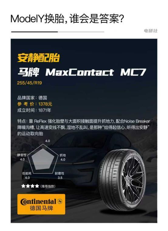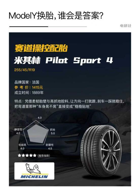 ModelY换轮胎,谁会是答案? 最近给 Model Y 换胎,我把大家最常讨论的四款做了对比: 固特异 e锐乘 Electric Drive、米其林 Pilot Sport 4、普利司通 T005 EV、马牌 MaxContact MC7。 不是为了找“最好”,而是确认 哪一款最适合日常的我。 换胎这种事就像挑护肤,每款都有优点,看你用在什么场景。 ��固特异 e锐乘 Electric Drive:喜欢车内“静下来”的会更满意 它的特点真的很明显:安静稳定省能耗 胎侧带 特斯拉T0标识,适配 Model Y 的程度真的非常高。 14.5cm宽的静音棉把胎噪压得很稳,特别是城市高架那种 80km/h 场景,车厢更松弛; 胎壁支撑也不错,高速并线不会有那种“软”的感觉。 适合人群:更看重家人乘坐感、经常跑高架通勤。 �� 米其林 Pilot Sport 4:喜欢驾驶感的会直接爱上 米其林就是操控很“爽”: 转向更直接、路感清晰、弯道特别有信心。 不足是高速时风噪叠加胎噪会明显一些。 但如果你喜欢开车的人味儿,它很对胃口。 适合人群:经常高速、喜欢运动感、开车比坐车更重要。 �� 普利司通 T005 EV:城市代步的“温柔型”轮胎 它偏向舒适,低速滤震好、小碎石路面很干净。 更像是一款“在市区很乖”的轮胎。 高速胎噪控制没有那么稳,但能耗友好、方向轻松。 适合人群:市区代步多、追求轻松好开的日常体验。 ⚡ 马牌 MaxContact MC7:性能优先,湿地表现强 强化胎肩 + ReFlex 胶料,让它在湿地刹车、弯道支撑都很稳。 就是 NVH 偏运动,噪音会大一点。 适合人群:爱跑山、偶尔运动驾驶、对抓地力敏感。 四款轮胎没有“谁吊打谁”,只有“谁更适合你”。 想开得爽,选米其林 想市区舒服,选普利司通 想湿地稳、过弯强,选马牌 而我个人更倾向于固特异 e锐乘——作为特斯拉 T0 原厂认可胎,它在静音、适配度和能耗控制上做得更均衡,尤其适合像我这样常在城市通勤、也看重家人乘坐感受的车主。 轮胎就是车辆的“情绪滤镜”,选对了,你每天的通勤路都能变舒服一点。
