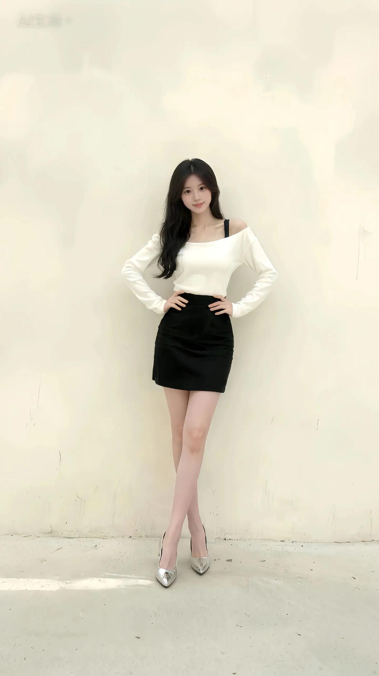 优雅白裙与黑色短裙的完美碰撞,高跟鞋下的自信步伐。