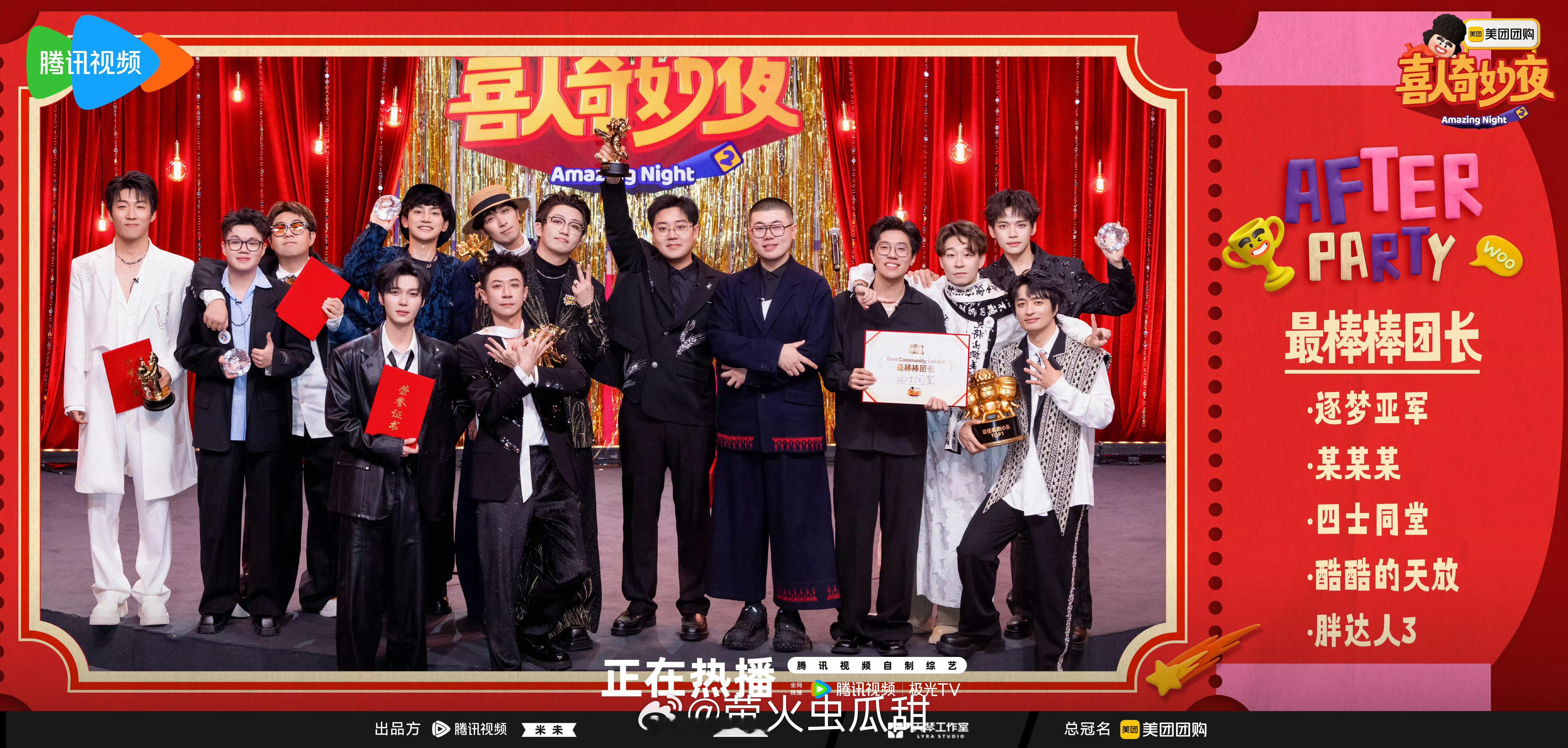 喜人奇妙夜收官啦一年一度的颁奖典礼来袭本届喜人大会年度获奖名单如下~请在评论区说出你最喜欢的喜人!喜人收官派对喜人奇妙夜