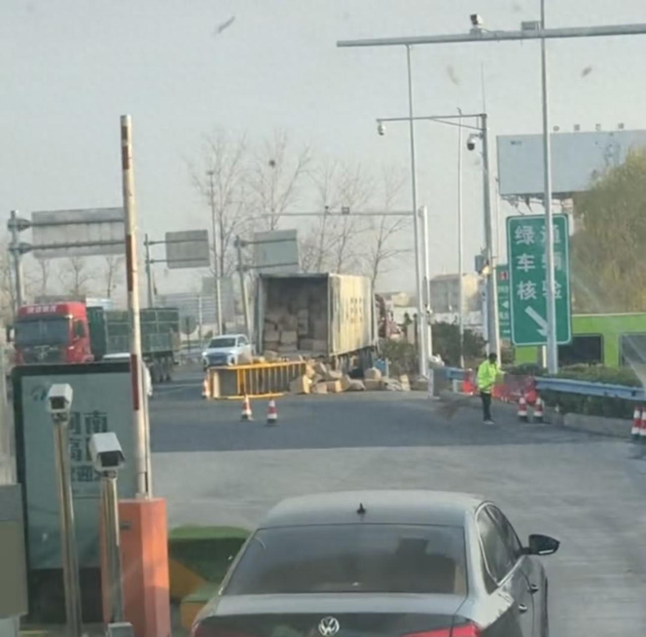 “严查到底!”近日,河南商丘,一货车司机过收费站时,工作人员要检查车上的货物,要