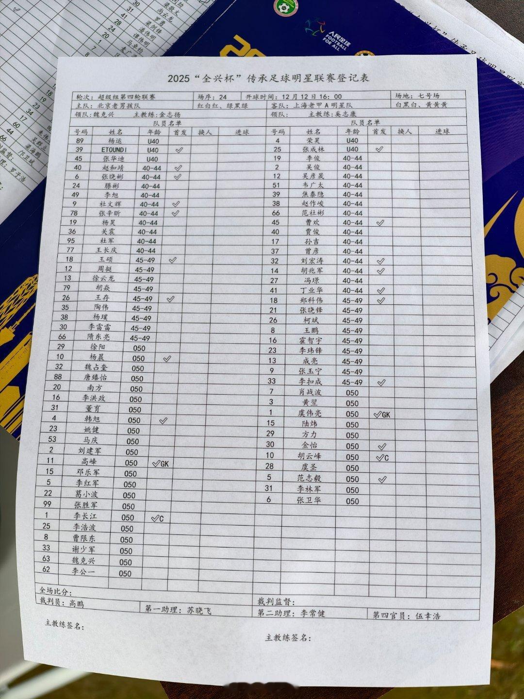 2025“全兴杯”传承足球明星联赛全程可关注免费看高清直播⏰今天在现场,所以我就不转播啦北京老男孩🆚上海老克勒🖊️大名单图1️⃣,划√的是首发球员。老甲a