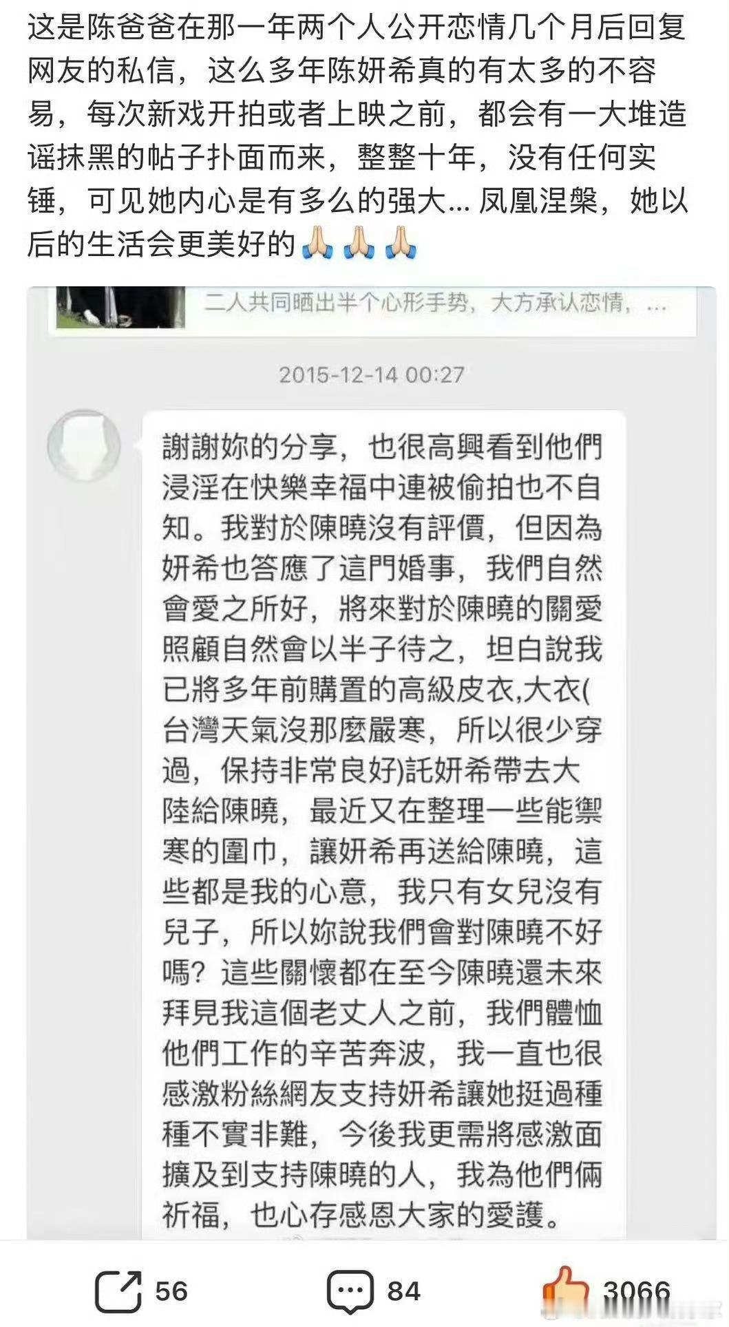 陈晓当时都没去拜见岳父岳母,但因为女儿喜欢,所以他们愿意支持未来女婿。人家父母就是传.统了点,觉得自己用不上的东西送别人,是关系亲近的意思,有的人非得过分解.读。可是陈妍希父亲去世,陈晓未发文悼念,也未在陈妍希身边默默陪伴。以陈晓的咖.位,这么大的事情,难道剧组会不放人?就是离婚了,男方也应该出现祭.拜一下啊,毕竟当了10年的亲人,让人感觉很冷.血,无情……为啥一直都爱骂女方?陈晓甚至在公开场合采访直接当众黑脸,表现冷漠,全程眼睛没有注视过陈妍希,如此不体面!心疼陈妍希把自己的青春交了给一个不值得托付的男人!事实证明,爱与不爱真的很明显。陈妍希爸爸将陈晓以半子待之热点观点