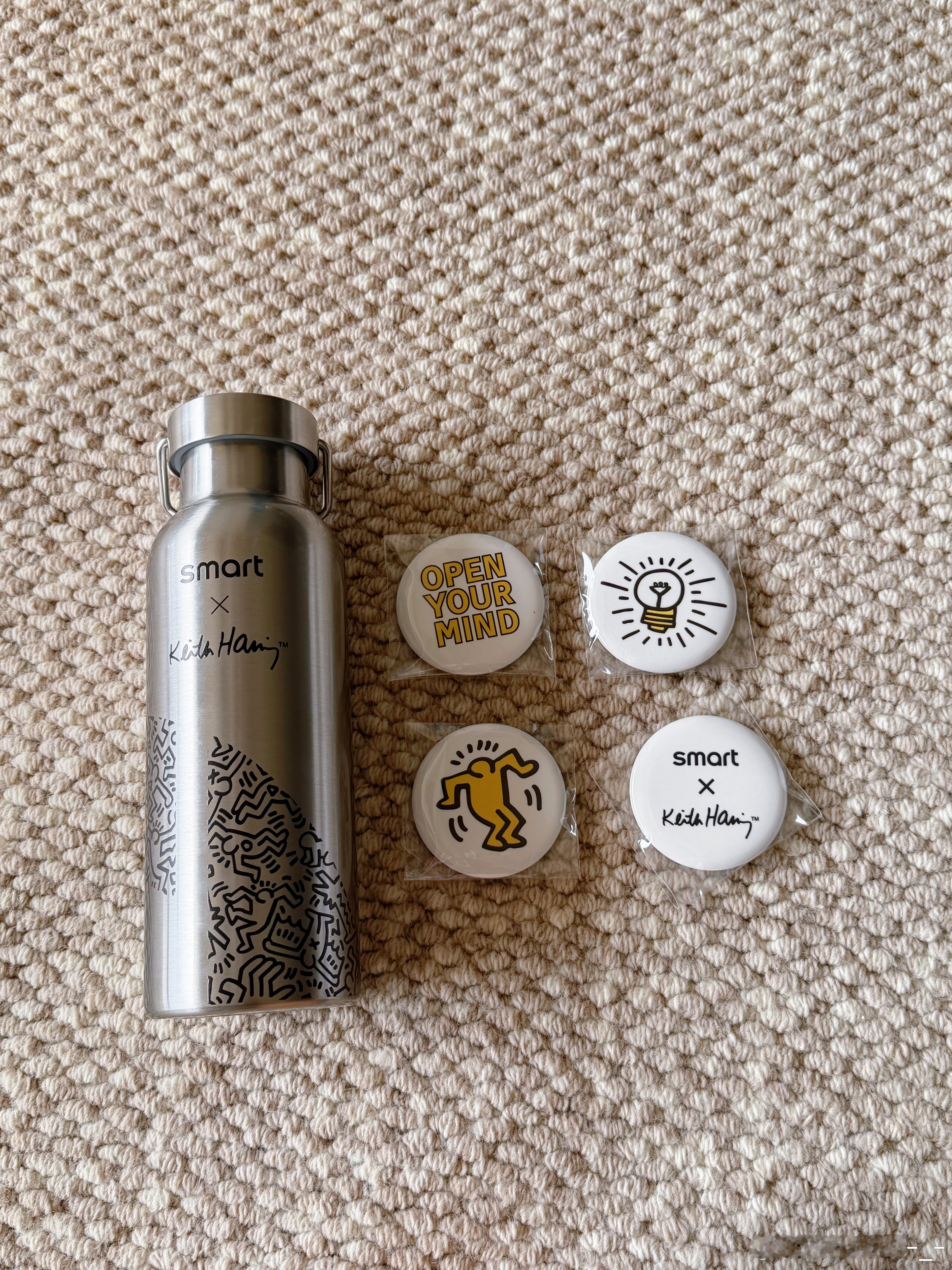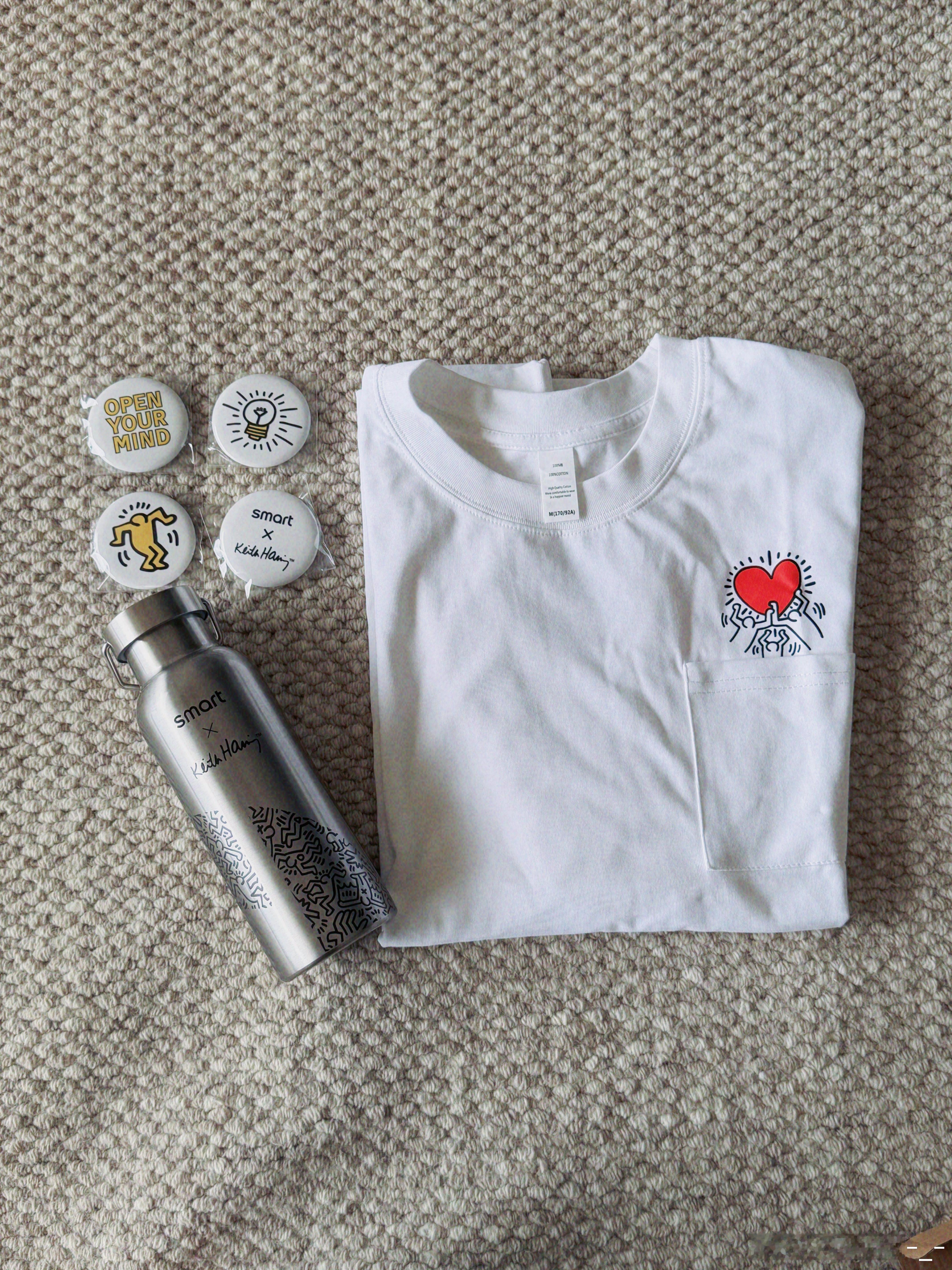 刚拆了smart×Keith Haring的联名礼盒,这涂鸦设计也太对味了水杯质感很好哎(泡点枸杞?),白T穿起来也舒服欧尼茜茜smart