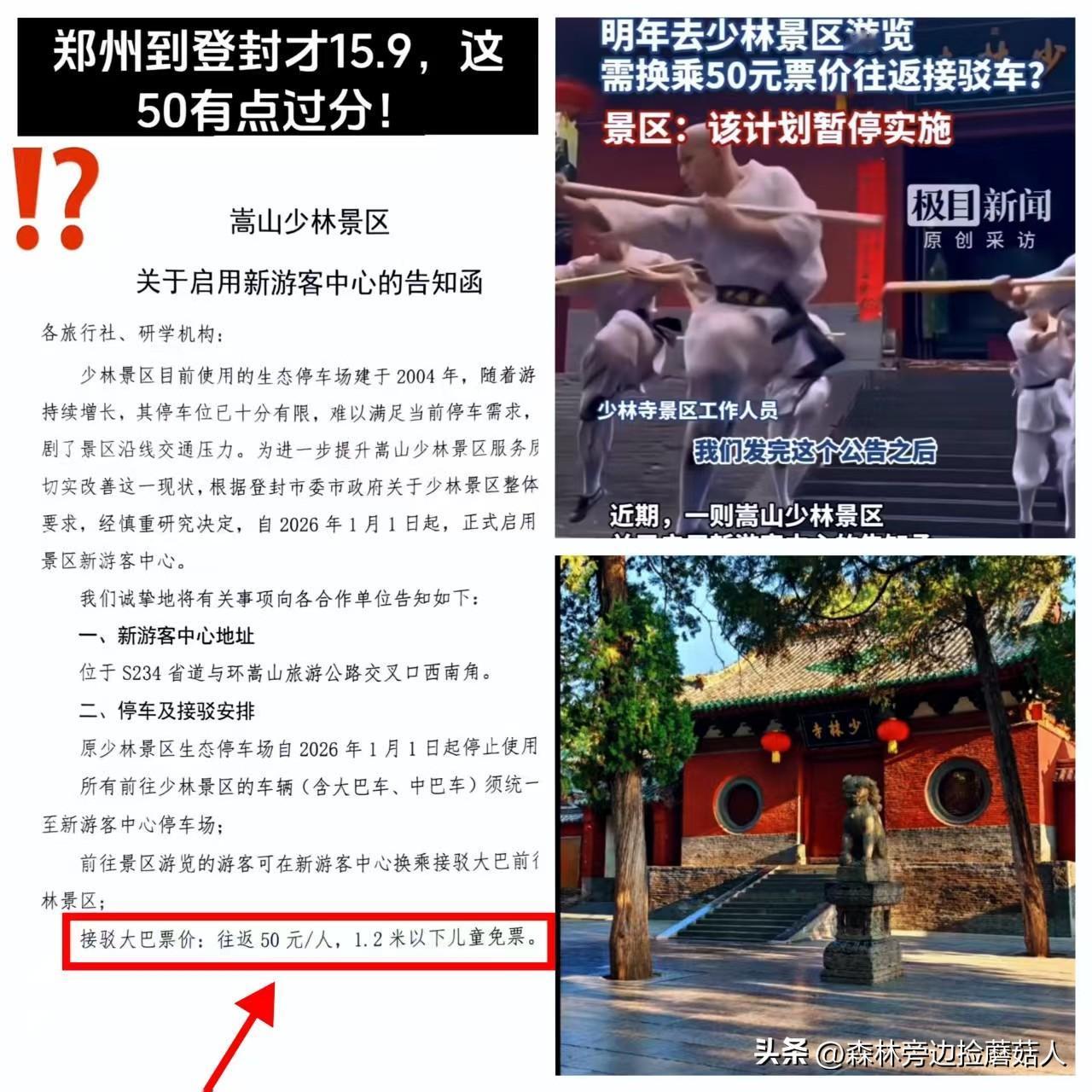 刚走了个释永信,没想到这次来了个更狠的。 就在刚刚,少林寺发出了新规!新规规定 2026 年元旦起私家车不能进寺,游客得把车停新建游客中心,坐接驳车进寺,往返费用 50 元。 少林寺的解释是为了缓解停车压力和交通拥堵,听起来挺合理,可这五公里的距离和五十元的费用搭配在一起,难免让人多想。这究竟是为了解决问题,还是悄悄打开了另一扇商业化的门? 佛门本是清净地,但这些年少林寺的种种操作,总给人一种在商业和修行之间摇摆的感觉。之前高价香火的问题闹得沸沸扬扬,后来撤下了,大家刚觉得松了口气,现在又来了个接驳车收费。不少游客和信众心里不是滋味,觉得这仿佛变了味。 寺庙的维护和发展需要资金,这谁都能理解,但方式方法却值得深思。当清净的禅意与明码标价的服务捆绑在一起,那份朝圣的初心会不会被悄悄稀释?我们怀念的,是那份能让人沉下心来的朴素与庄严,而不是处处计算性价比的旅游体验。 其实回过头想想,这件事或许反映了一个更深层的命题:在现代社会的浪潮中,传统文化场所该如何自处?完全拒绝现代管理,可能面临秩序混乱和资源不足;但若商业痕迹过重,又会失去本真的精神内核。 少林寺的这次调整,也许是一次尝试,但其中的平衡点找得如何,观众的眼睛是雪亮的。收费本身不是原罪,关键在于是否真正提供了等值的便利与服务,以及整个过程是否透明、合理。如果接驳服务高效、舒适,真正解决了游客停车难、道路堵的痛点,那这五十元或许物有所值;但如果只是多了一道收费环节,体验却跟不上,难免寒了大家的心。 这件事也给我们提了个醒:我们对传统文化场所的期待,究竟是什么?是作为一个纯粹的旅游打卡点,还是能够提供精神慰藉的文化净土?或许,两者之间本不该是非此即彼的选择。管理需要智慧,也需要诚意。 少林寺作为一张重要的文化名片,其每一个举措都会引起广泛关注。我们希望看到的,不是一个在商业化道路上渐行渐远的景点,而是一个既能妥善应对现实挑战,又能守护好那份千年禅意的心灵家园。毕竟,真正的清净,不在于与世隔绝,而在于身处纷扰却能持守本心。 对于少林寺的这项新规,你怎么看?你是否愿意为这样的接驳服务付费?或者说,你认为寺庙该如何平衡好自身发展与游客体验之间的关系?欢迎在评论区聊聊你的看法。释永信 少林寺释永信