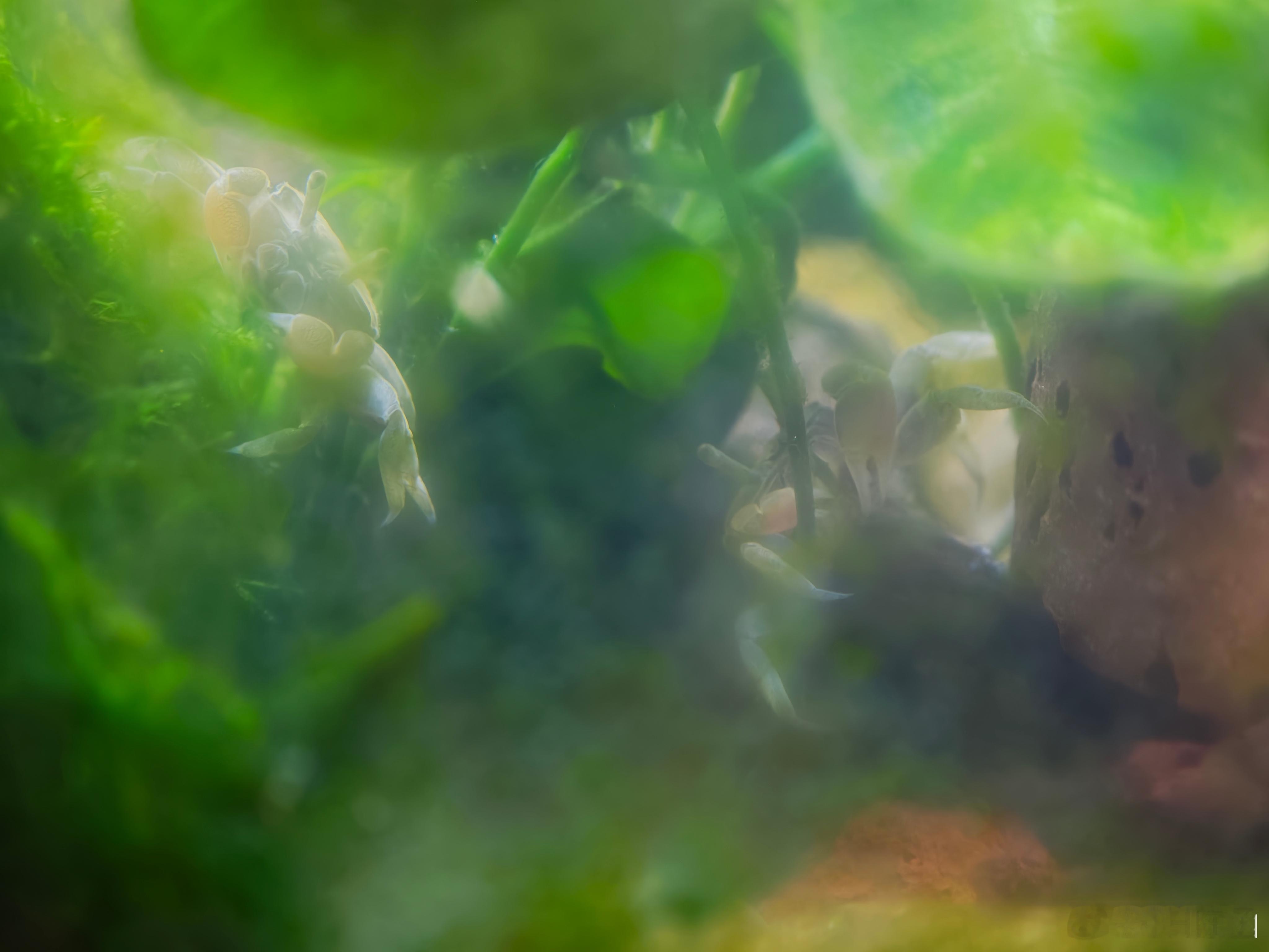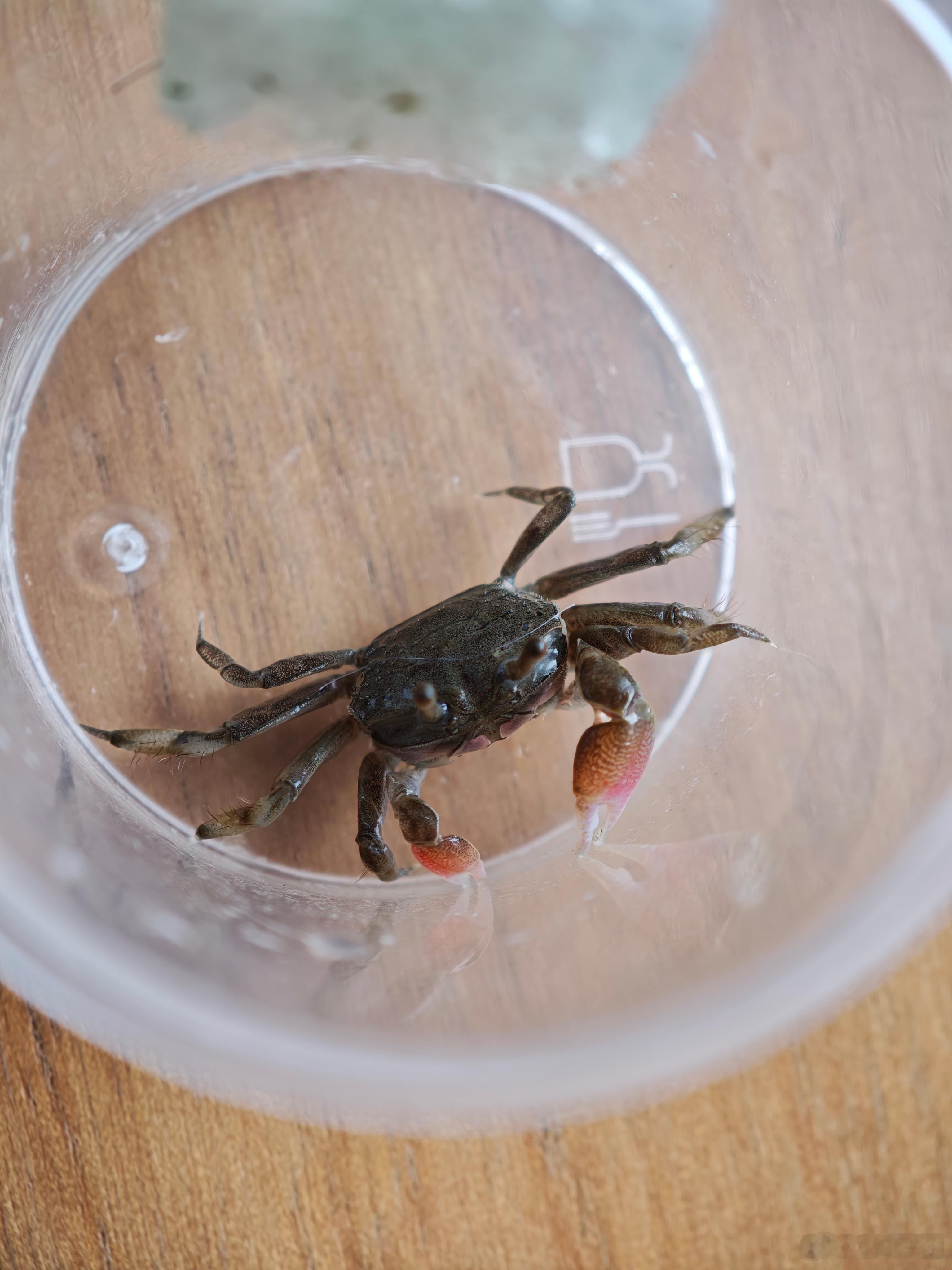 上回买的小虾被鱼缸恶霸吃的差不多了,我又买了10来只辣椒蟹来除藻,这回它应该吃不下了吧?