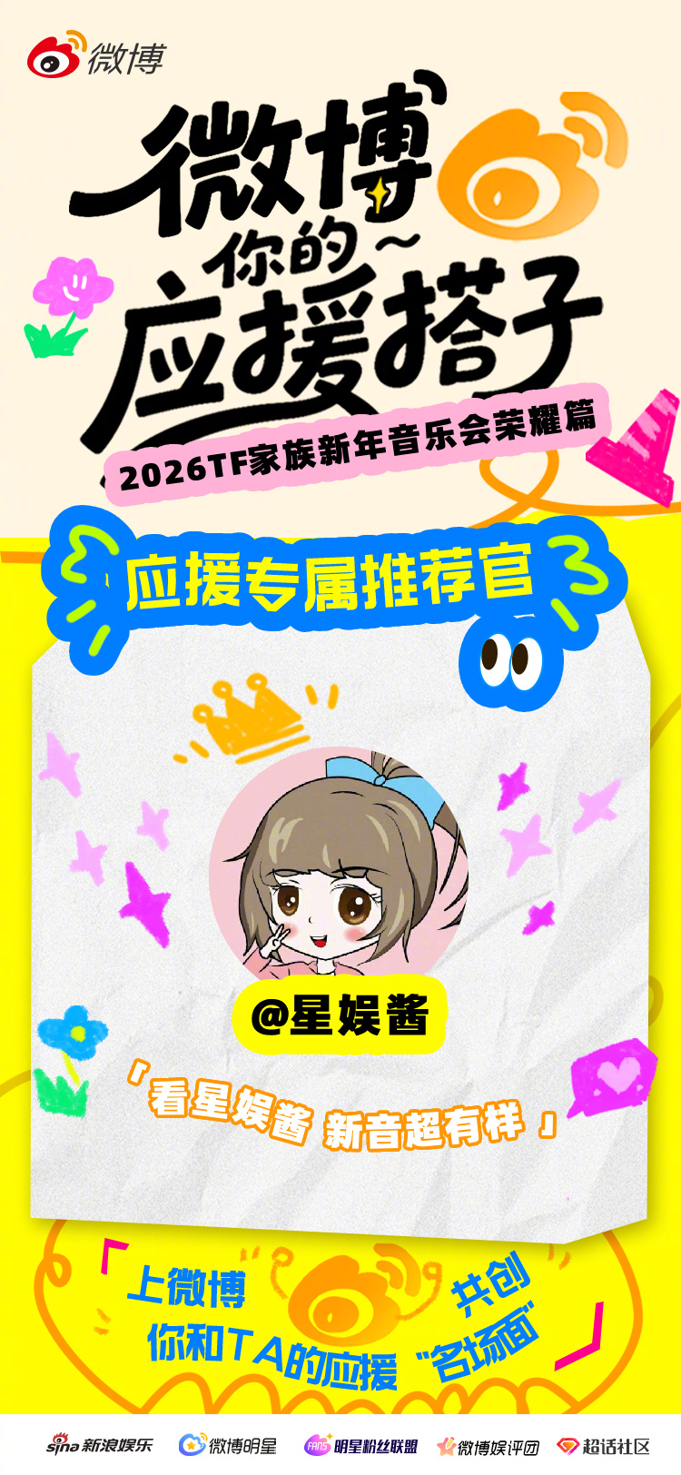 微博你的应援搭子 看星娱酱,新音超有样!还在为你担新音应援如何出圈而担心吗?「TF家族2026新年音乐会荣耀篇」的应援专属推荐官前来支援!安利稿件请砸向私信吧~⏰即日起—12.21 📣上微博带「专属定制话题」发博参与活动🔥排名Top1即可解锁大V专属推荐!上微博参与活动,一起让你担新年应援出圈又出圈~详细活动规则戳下图👇快来开启新年荣耀时刻!2025娱乐年终盘点
