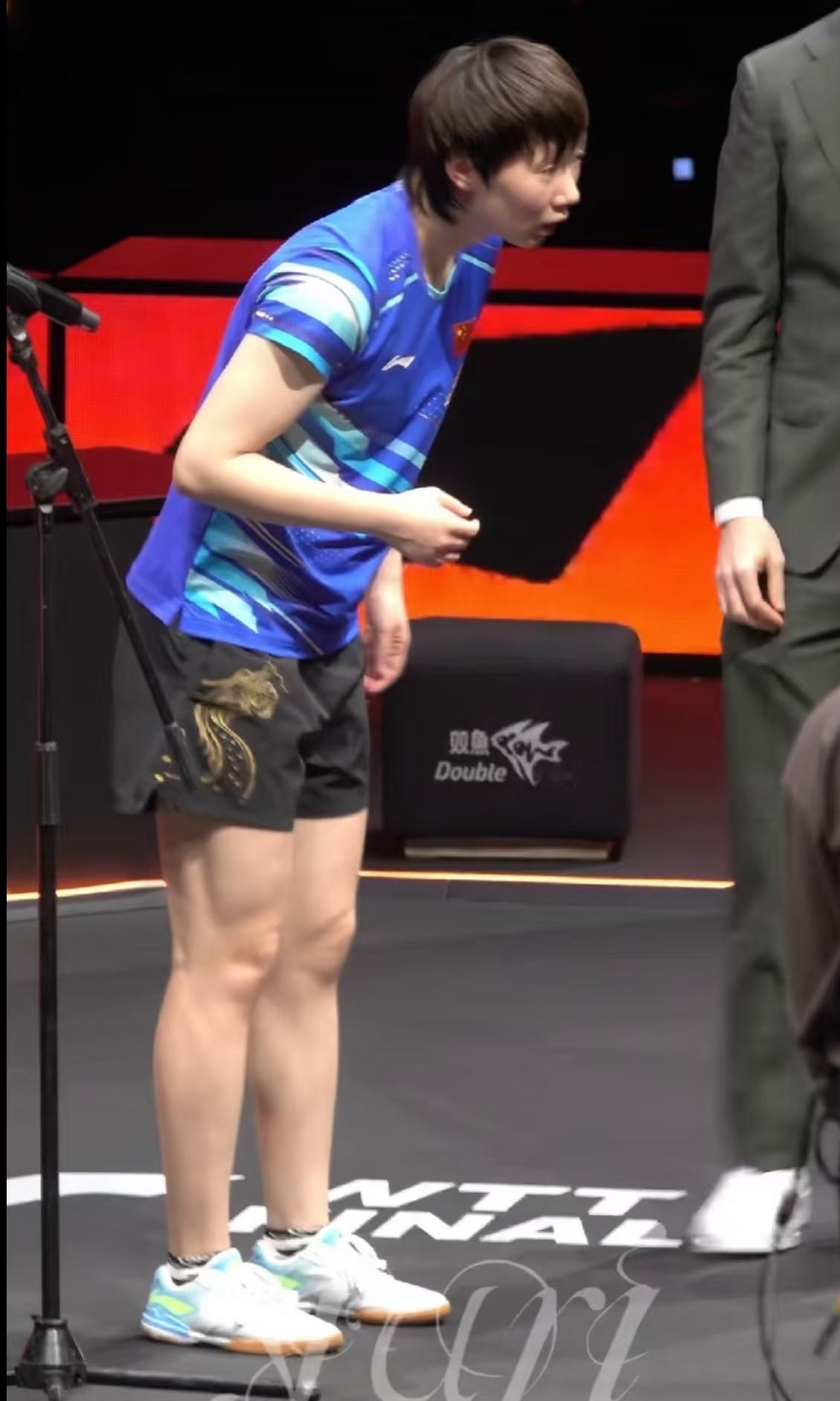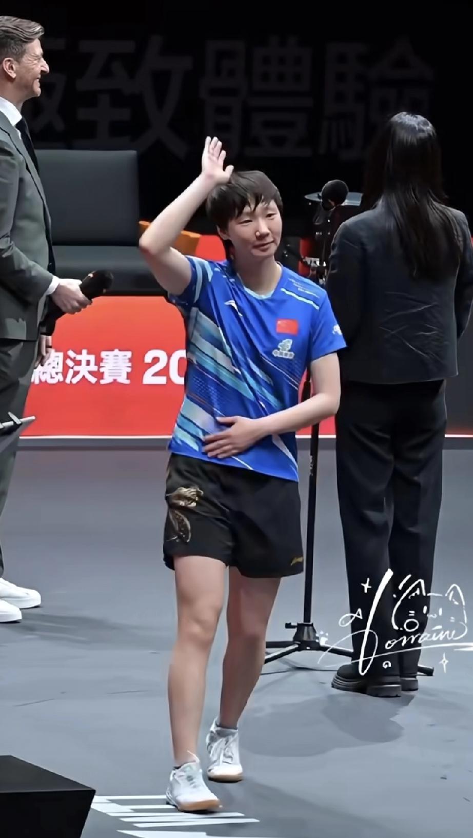 WTT香港年终总决赛女单1/4决赛,成功战胜韩国选手朱芊曦的王曼昱赛后采访又犯迷糊啦! 是那个场上凶猛,场下微醺的“国乒闫妮”! 和工作人员沟通到底站在哪里接受采访,弯着腰侧身倾听,一脸疑惑的样子太可爱了! 采访结束,和现场观众打招呼,曼昱有个习惯。就是举起一只手打招呼时,习惯的另一只手放在小肚子上。 今天是赢球后心情非常不错的曼昱!明天继续加油!