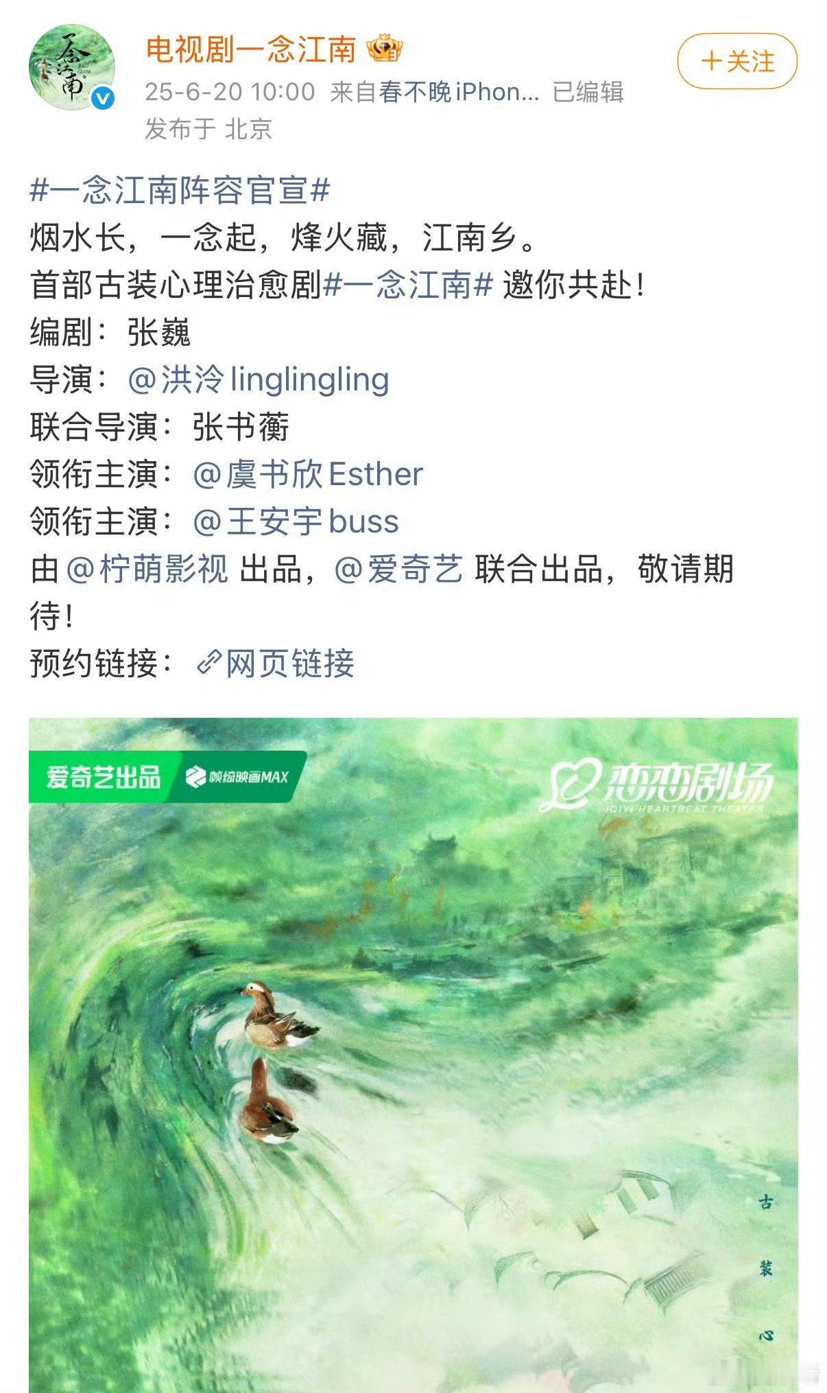 双轨空降,云初令跟着官宣不过同时一念江南也删掉官宣取关老鱼就等着看看哪个剧能真正开起来