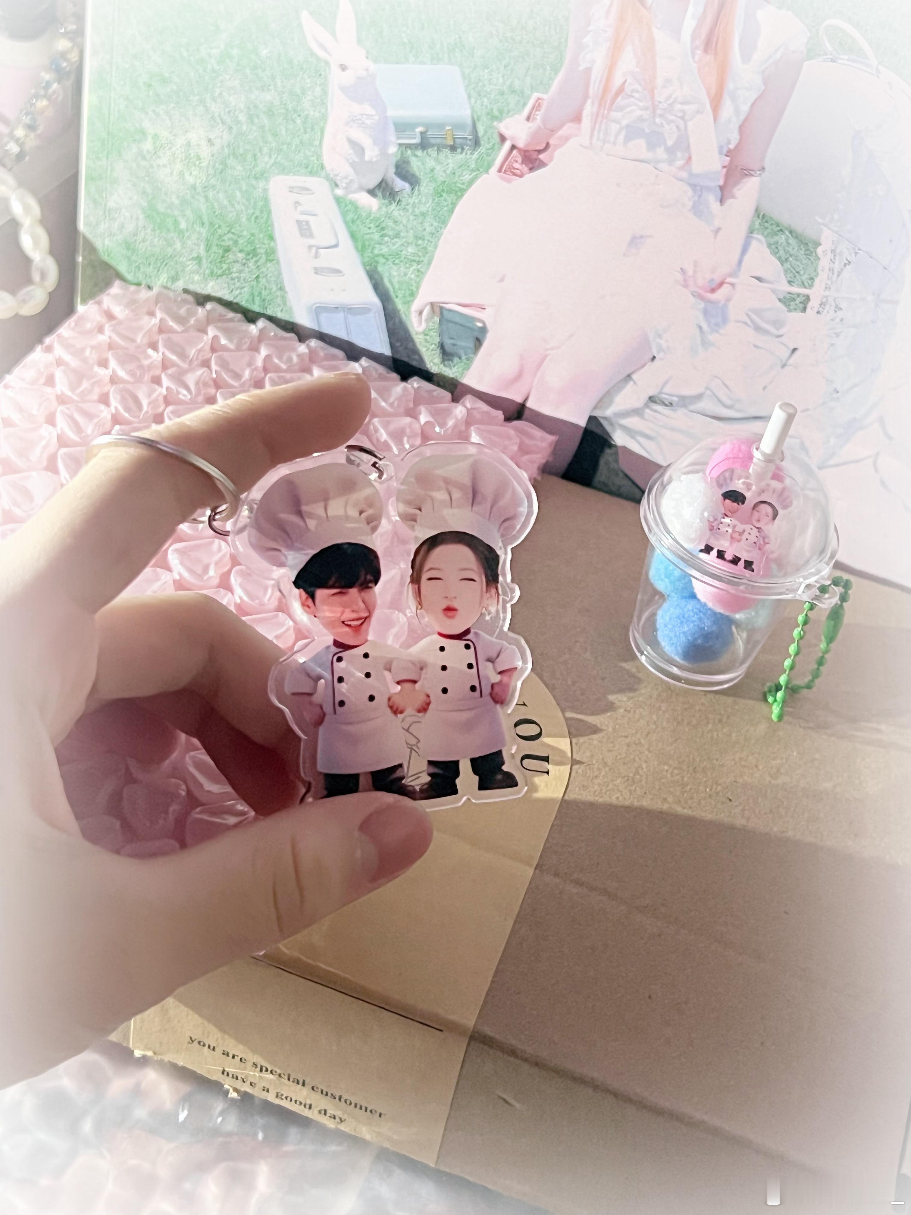 哈哈哈 收到三位老师的物料啦p1: 做的好萌 Q版卡通p2: 哈哈我一开始都妹注意杯子里有小小的比西 好细心p3: 真的好美 好会做啊做的都好好看哇~根本拍不出实物的美之前都没中过 真的很幸运
