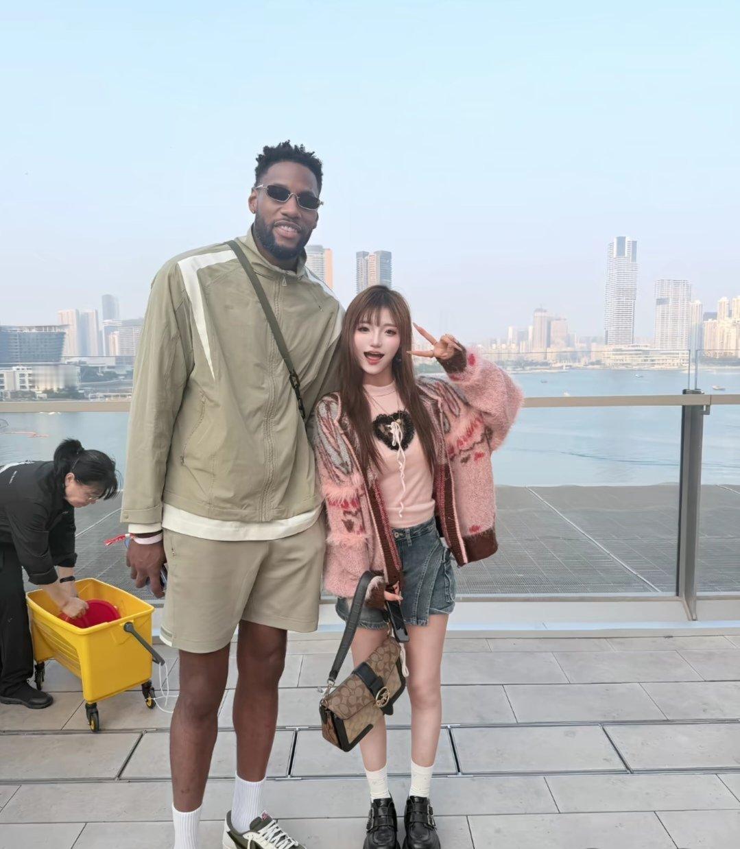 广东宏远男篮女球迷与其外援威姆斯同游,并表示好喜欢好大的威姆斯,并表示愿意陪他回国。