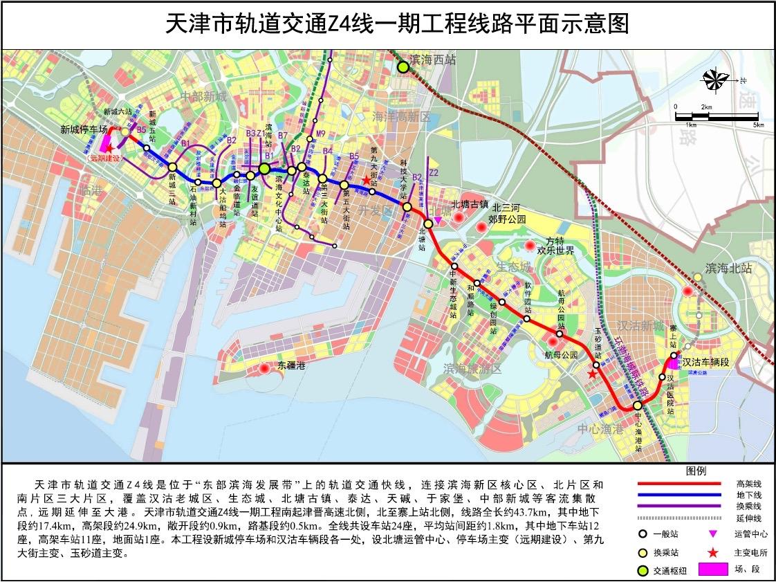 天津地铁Z4线 天津地铁Z4线一期北段(北塘站-寨上站)将于2025年底开通运营,共10座车站,设计时速120公里,全程约27分钟。线路以“多彩滨城”为主题。 Z4线是串联滨海新区南北的骨干线路,一期工程途经中部新城、于家堡、天碱商业区、开发区、北塘、中新生态城及汉沽,终点为汉沽寨上站。 一期工程全长43.7公里,共24站,采用6节编组A型列车。目前北段已进入空载试运行阶段,各车站装修及机电安装工作基本完成。等开通,滨海新区的交通会更便利,居民出行也更舒心,就等着体验啦! 天津地铁 天津地铁换乘站 天津地铁几号线