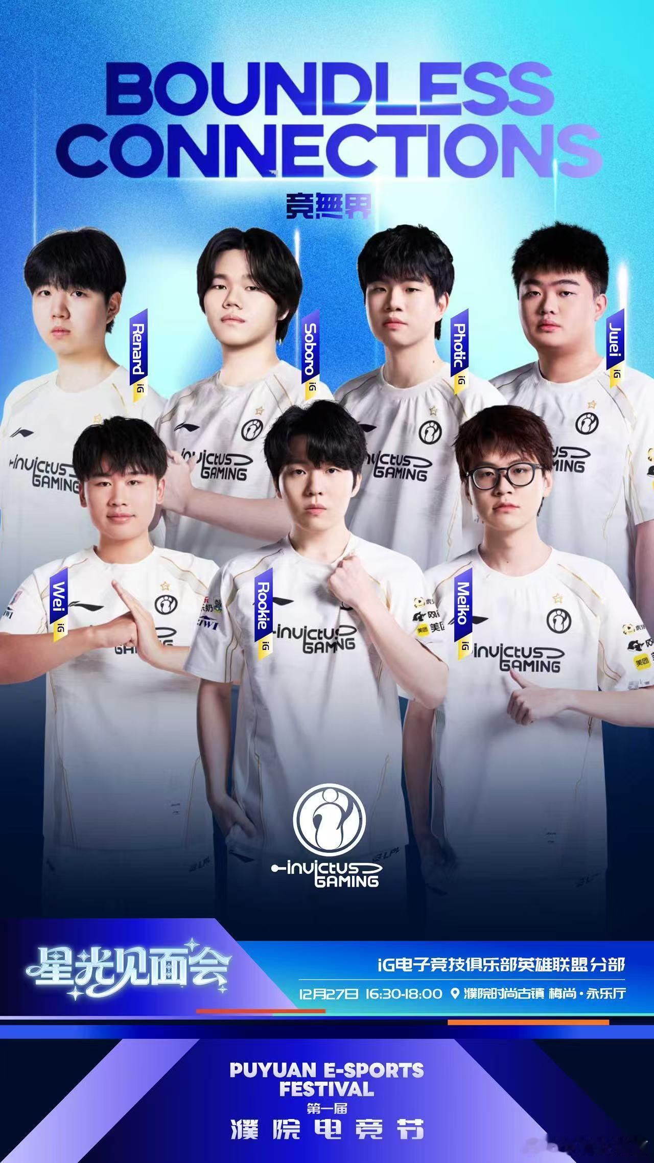 第一届濮院电竞节来了,12月27号这天邀请了iG、AL、Geng打中外明星循环赛和总决赛,听说之后还有iG的粉丝见面会。粉丝们千万别错过。2025濮院电竞节濮院竞无界濮院电竞节