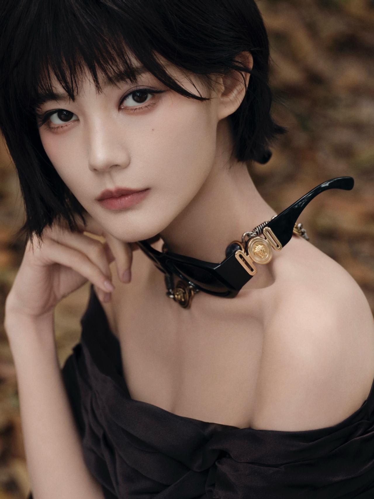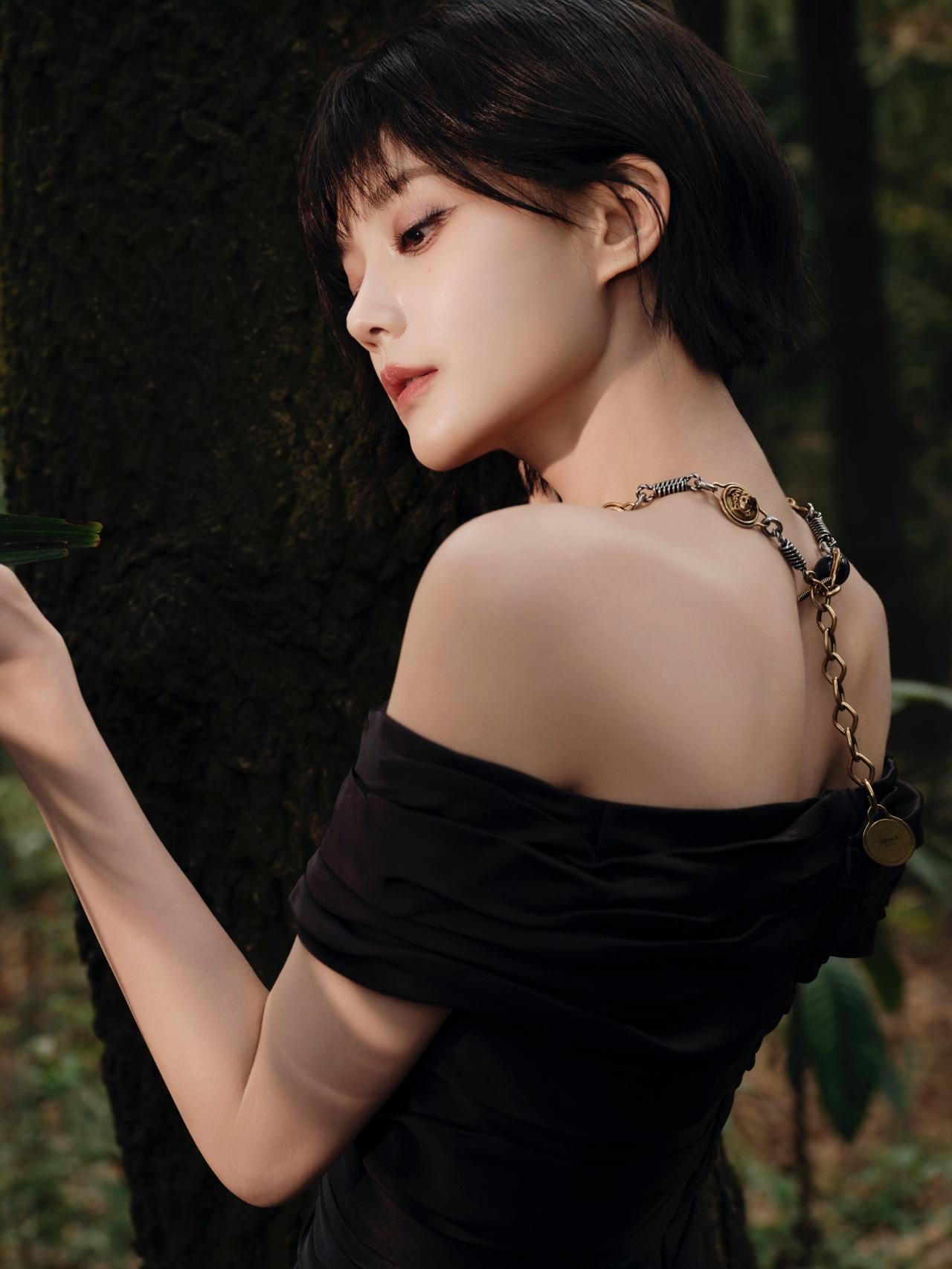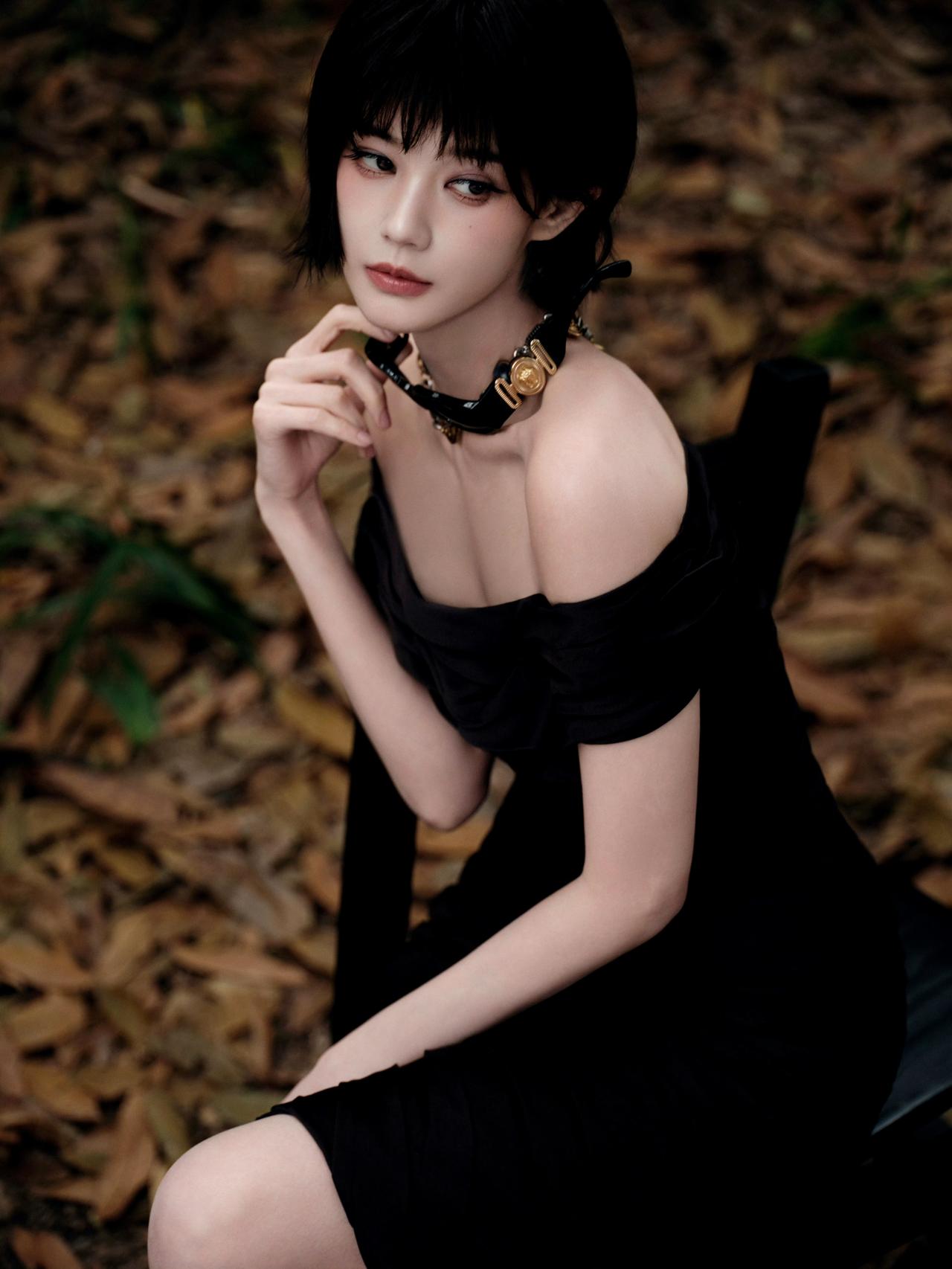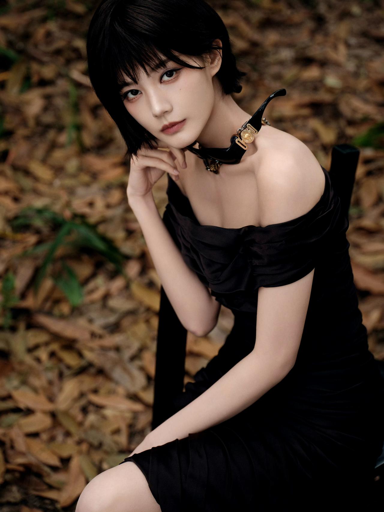 谁懂啊!李一桐枯叶林黑玫瑰造型,短发黑裙清冷杀疯了💥李一桐 氛围感女神 最美女神 分享女神美图