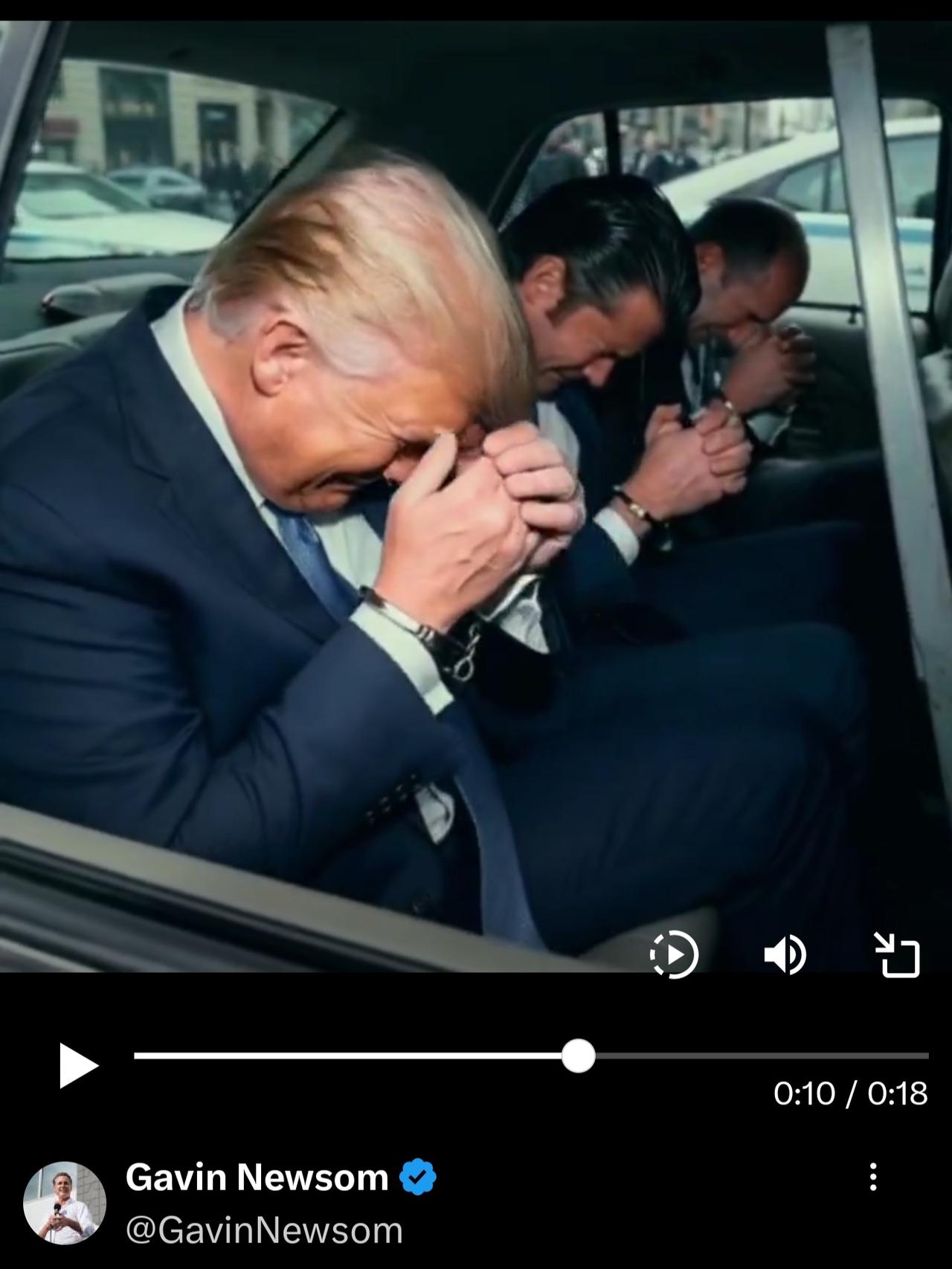 美国加州州长纽森是有多么恨老特啊! 天天发帖子骂老特,比如: 老特一个软弱的黑帮老大, 老特是历史上最具破坏性的总统, 老特身体又不行了, 老特可悲的“和平奖”体现了美国的衰落, 诸如此类,几乎天天发帖骂老特。 这不,昨天又发了个网友制作的视频, 视频里老特和赫格塞思被抓了, 戴着手铐,流下了悔恨的泪水。 看了让人觉得很搞笑。 美国的政治实在太奇葩了! 两党的撕裂也越来越严重了!
