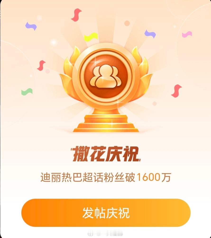 迪丽热巴超话粉丝破1600万了,恭喜🎉🎉🎉