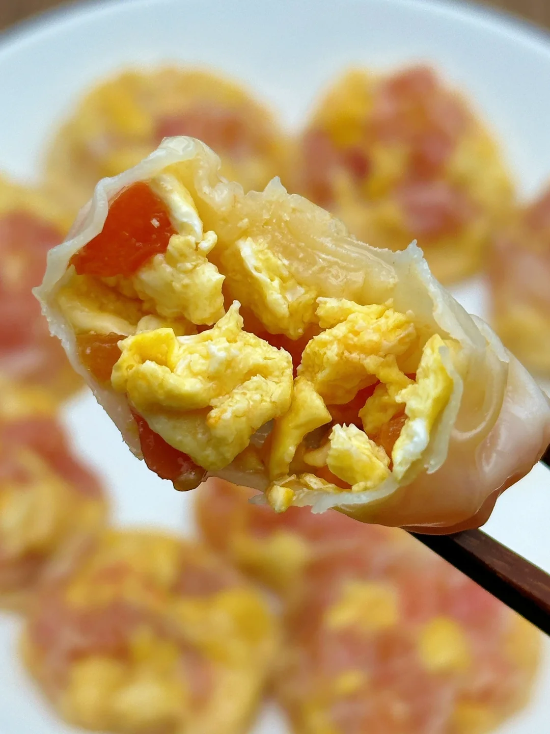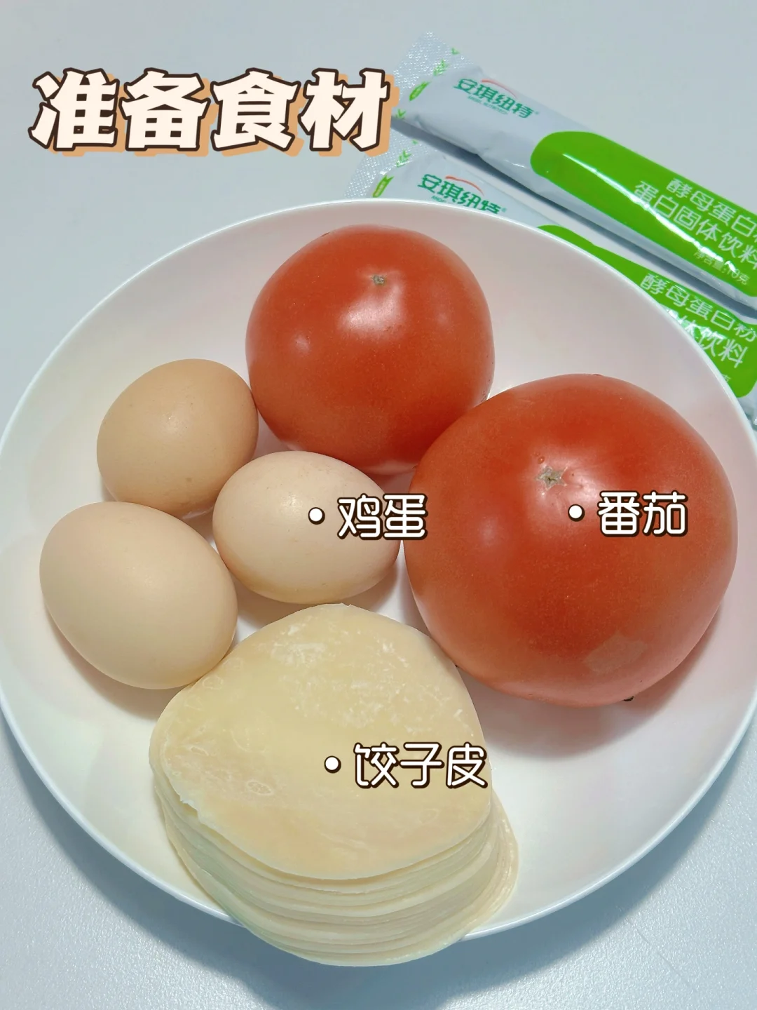 🥗食材:饺子皮,鸡蛋,番茄、安琪纽特酵母蛋白粉