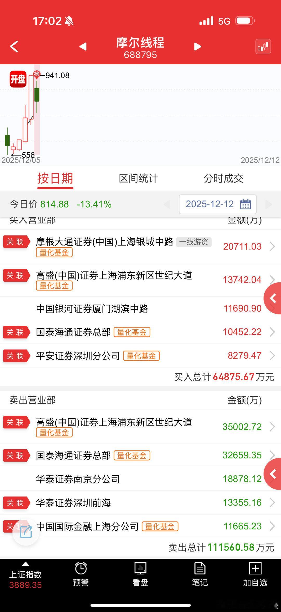 摩尔线程 sh688795[股票] 猜到了,量化运作,反正不是自己的钱,昨天追的游资急跌砸了