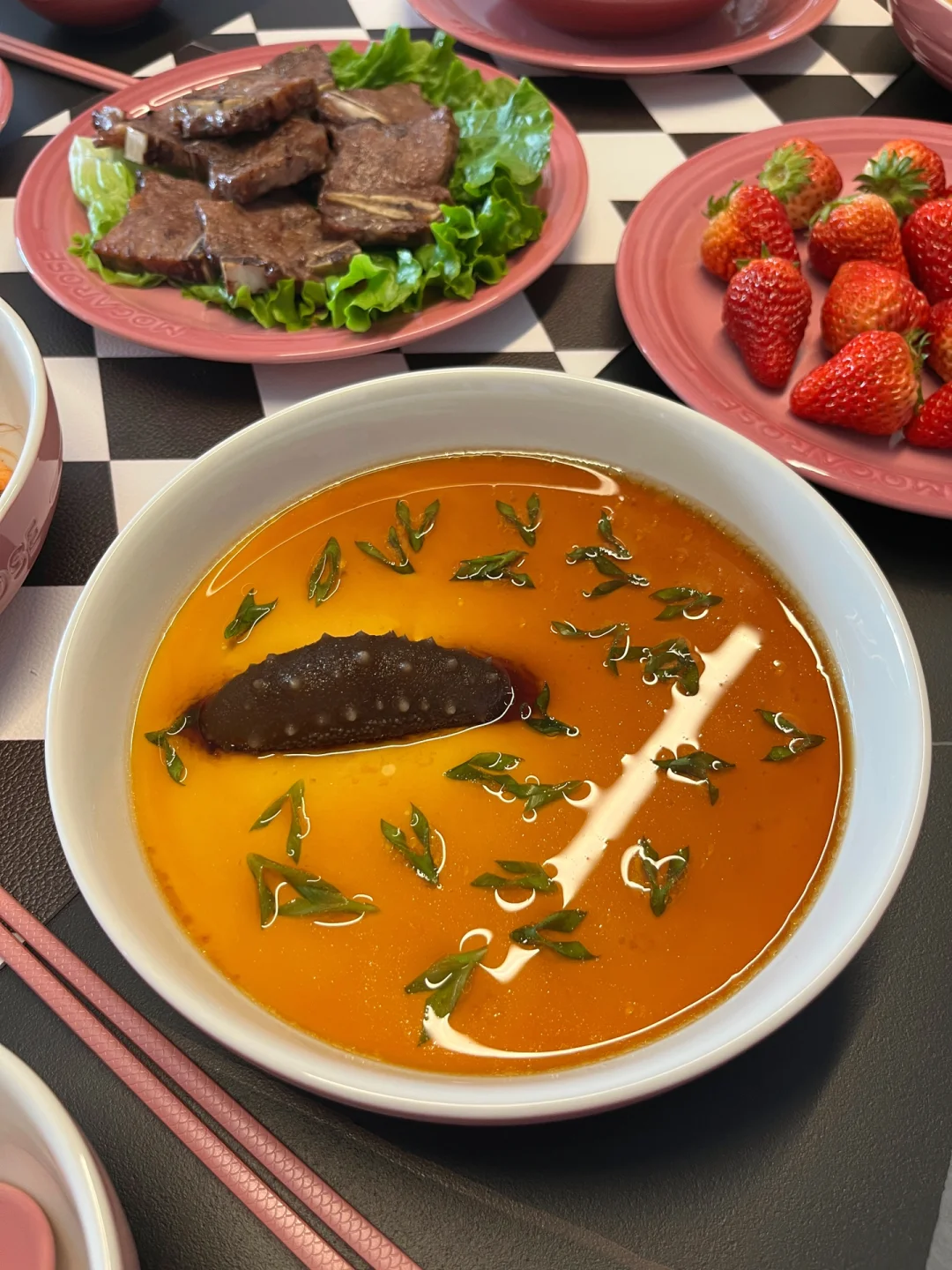 做自己的女王👸🏻 ,不止是今天才闪耀✨! 认真的年轻,优雅的老去,勇敢的大步向前,㊗️所有的姐妹们女神节快乐呀~ 【今日菜单分享】 🌸葱油小河虾 🌸木瓜燕耳羹 🌸香煎牛仔骨 🌸海参蒸蛋 🌸荷兰豆炒腊肉 🌸春笋烧豆腐 🌸葱油饼 🌸草莓