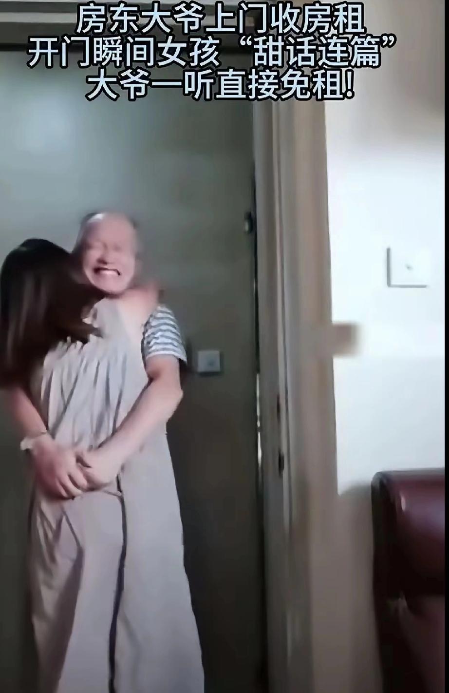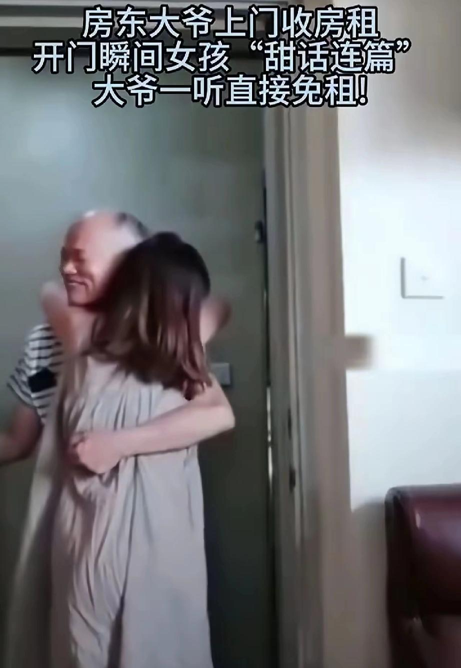 老大爷上门收租,开门瞬间,女孩子给了老大爷一个深深的拥抱,还一番甜言蜜语,直接让老大爷免租! 这一翻操作,直接惊呆网友,看来无论男人年纪多大,内心总住着一个年轻的心! 大家对此怎么看?