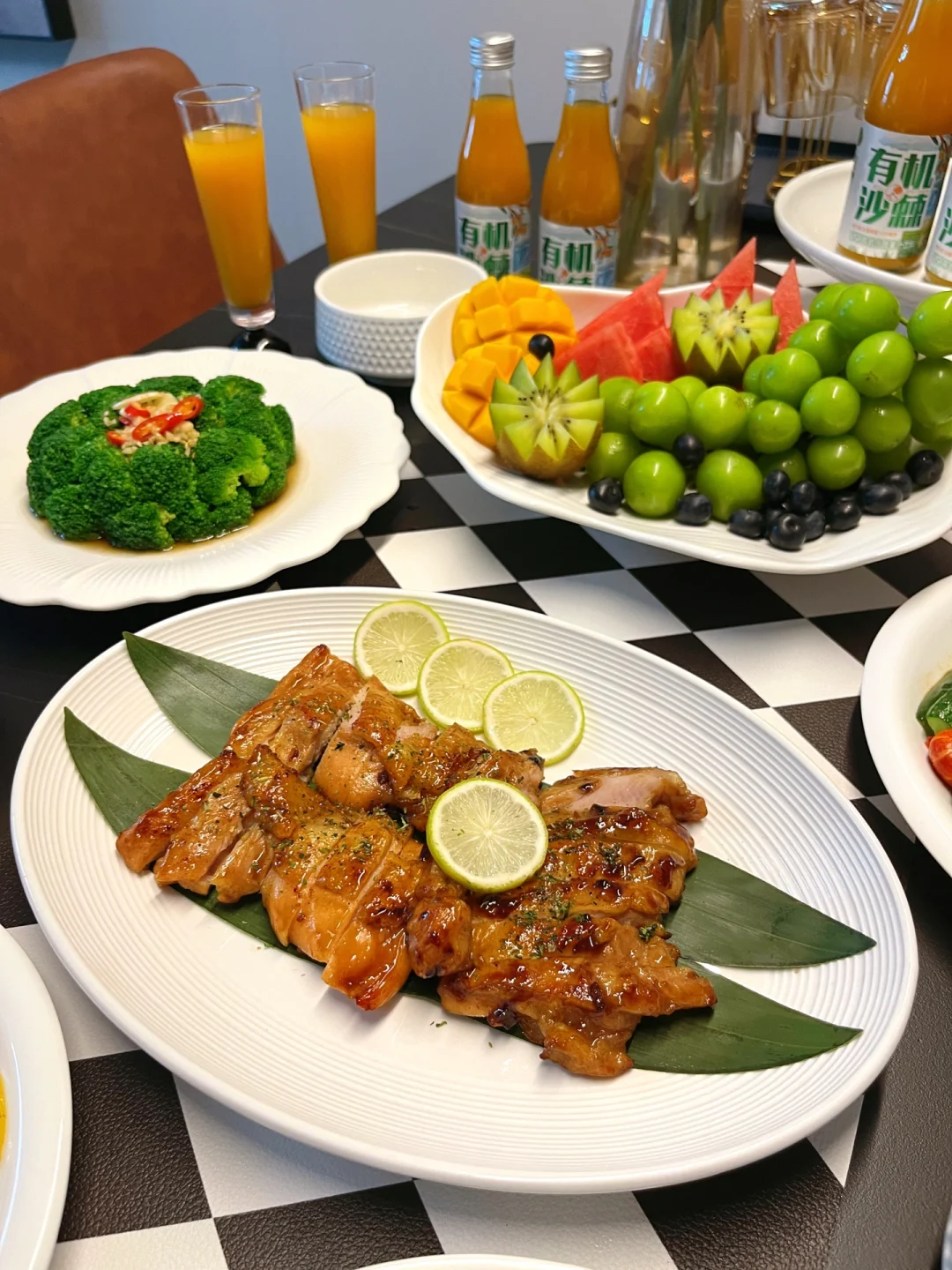 浮躁的时候,就多去几趟菜市场,看看人间烟火气,看看生活简单的模样,关心粮食和蔬菜,也让自己很快的平静下来。 【今日菜单】 🥢照烧鸡腿拍 🥢蜜汁红薯 🥢蒜香小龙虾 🥢芦笋滑蛋 🥢蒜蓉西蓝花 🥢水果拼盘 沙棘的好处应该没人不知道吧~是大名鼎鼎的vc果👑~ 我家今天喝的这款宇航人有机沙棘果汁它的原料是产自内蒙的野生小果沙棘,一瓶一码可追溯,我家冰箱常备~它的每一瓶都是鲜榨沙棘果,而且果汁含量也是>50%,满满VC,而且酸甜口感没有乱七八糟的添加,家里有老人孩子也能放心饮用~夏天我喜欢冷藏或者加冰块,解暑解腻很推荐!