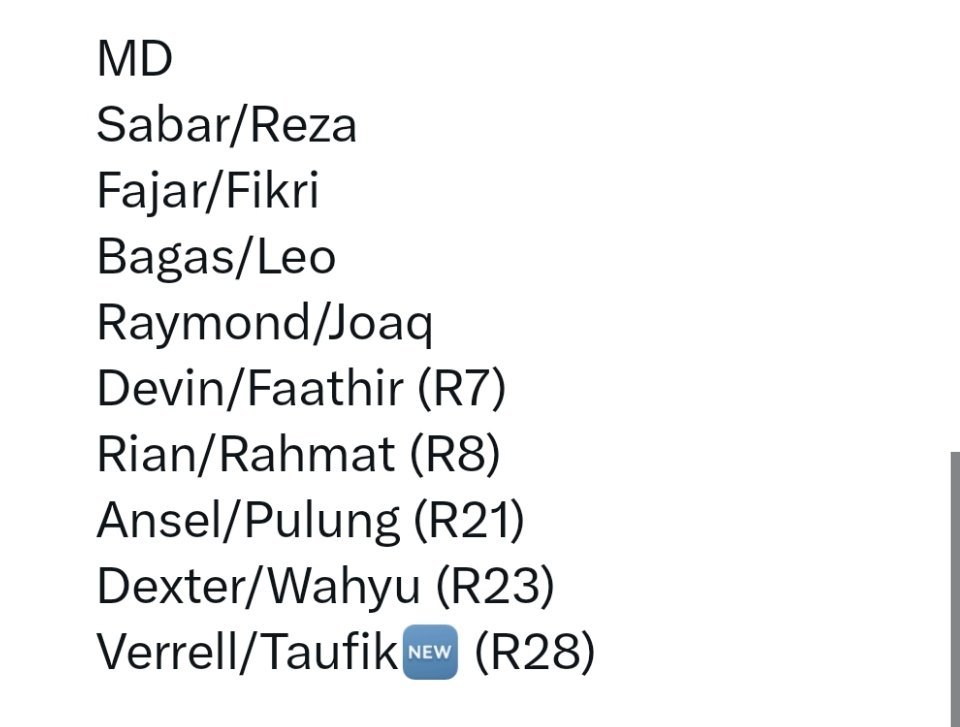 其实我之前问过教练东运会男双名单怎么改,当时跟我说是改成发夹菲克里和因陀罗华金现