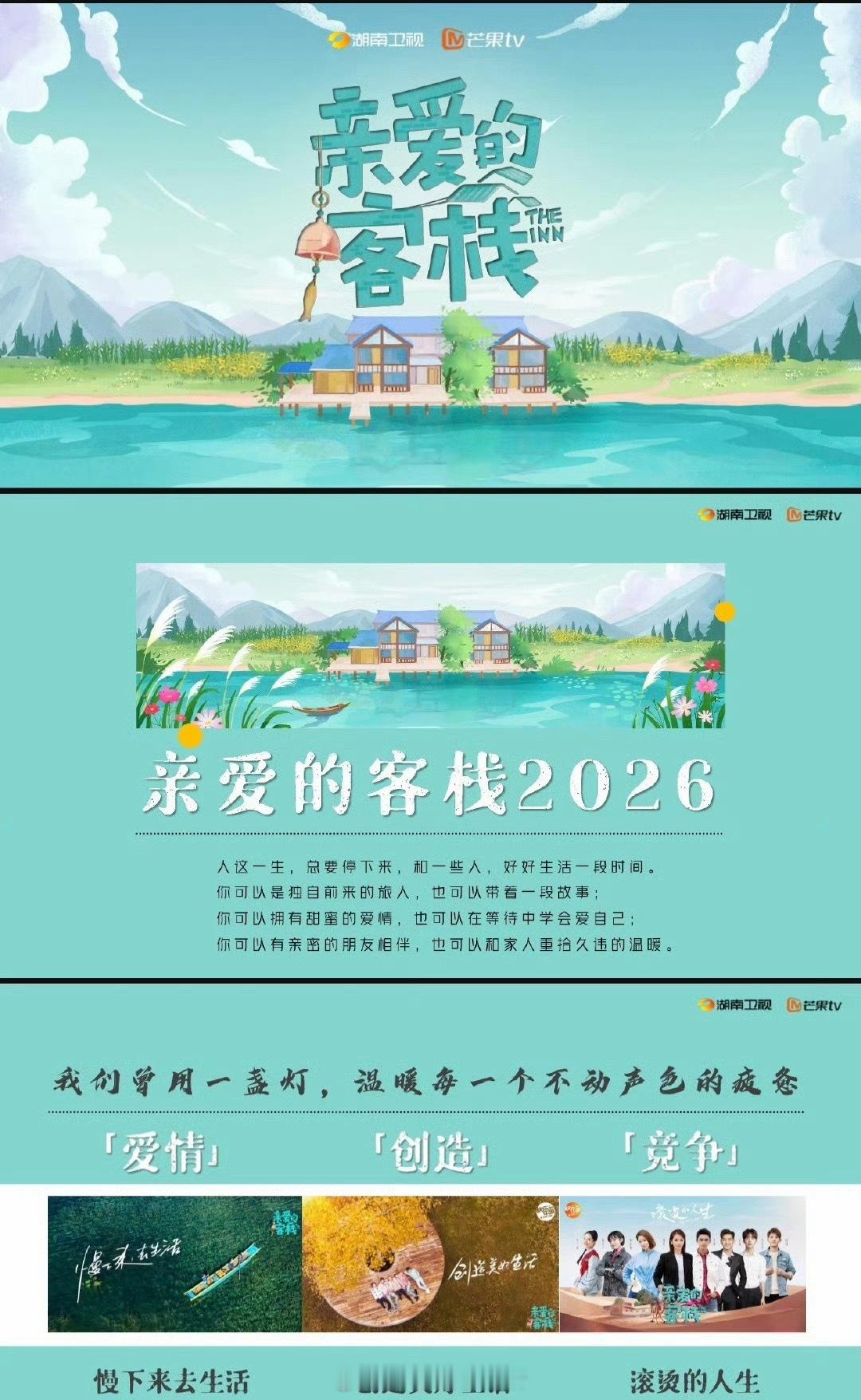 芒果🥭亲爱的客栈2026 暂定1月下旬录制14天,2月底或3月初上线常驻嘉宾:王鹤棣、吴泽林、沈月、秦岚、庞博/赵昭仪/徐志胜飞行嘉宾:白鹿、刘涛/毕雯珺/卢昱晓/张予曦/武艺