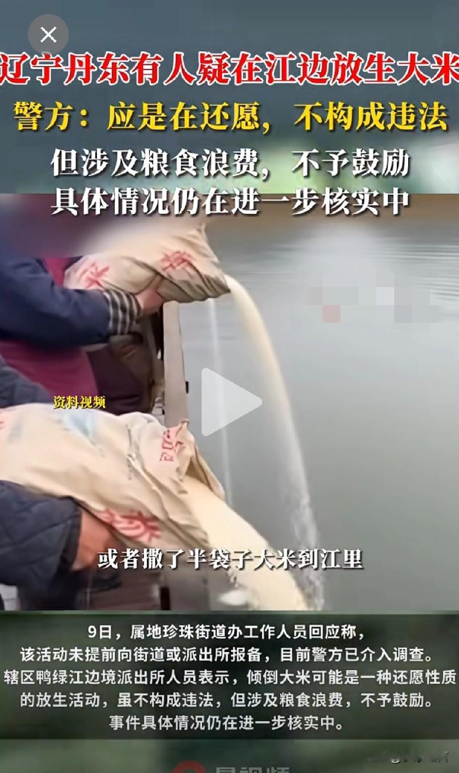 明确了:不是放生!最近有视频曝光辽宁某地有人在海上“放生”大米,十袋白花花大米被倾倒海中,令人不解、心疼、震惊。 今早上刷到一个头条,佛协出来说话了:此行为不是“放生”,并表示坚决反对。 近来所谓“放生”行为确实不少。本来作为佛教信徒善性修为,我们不予置评,然后实际有些行为过于离谱,叫人看不下去。比如还有一个视频显示,一伙人一次次集中“放生”了数百只山鸡。要知道山鸡可是祸害农民的,种什么祸害什么!这是修善吗? 愚昧,真可怕。愚昧,真与学历无关。