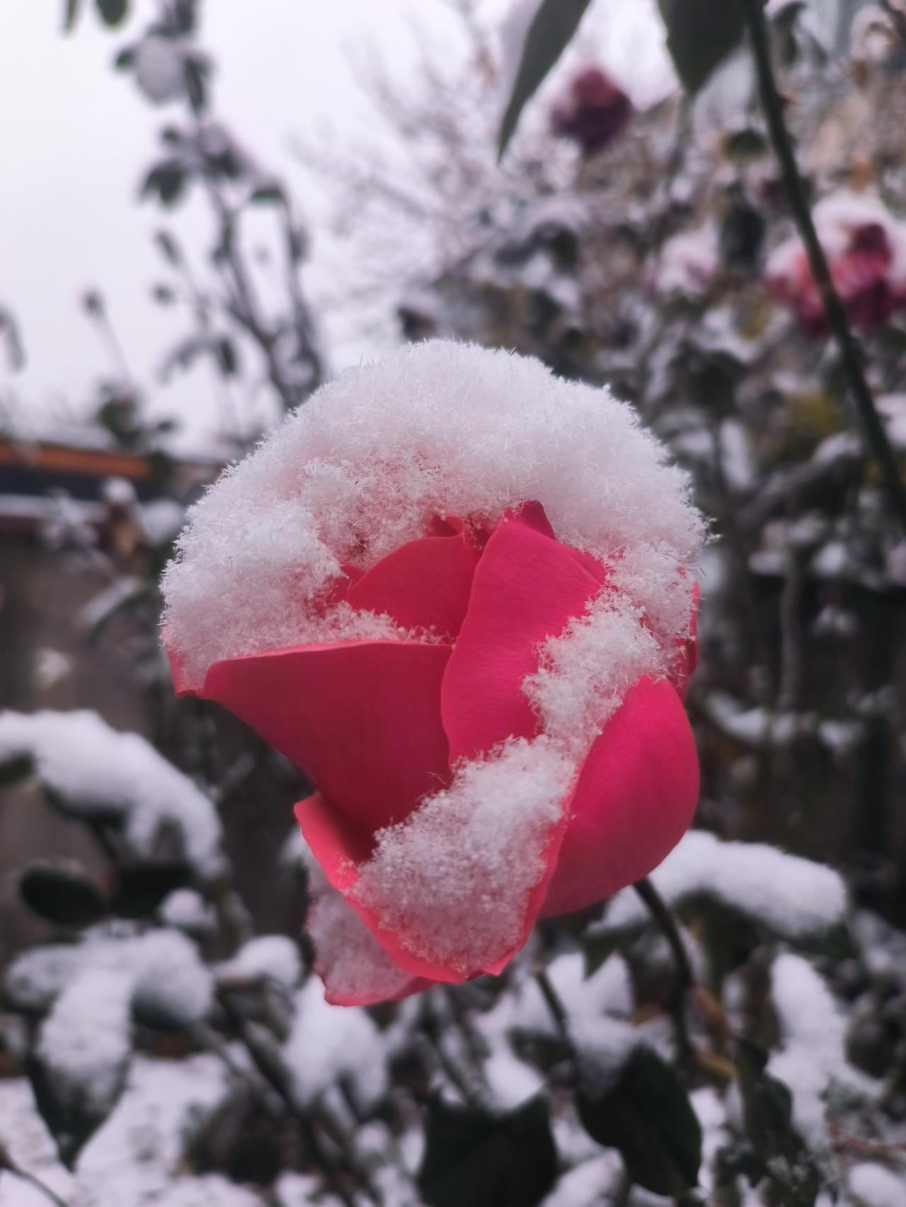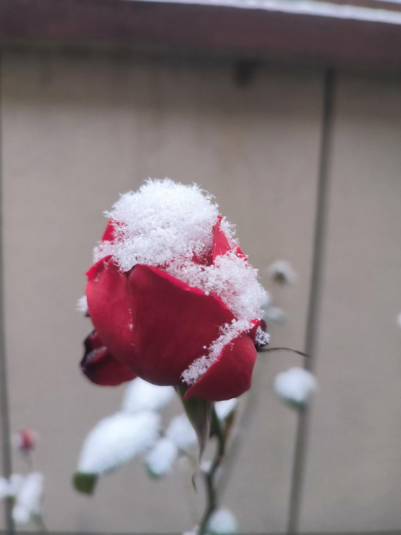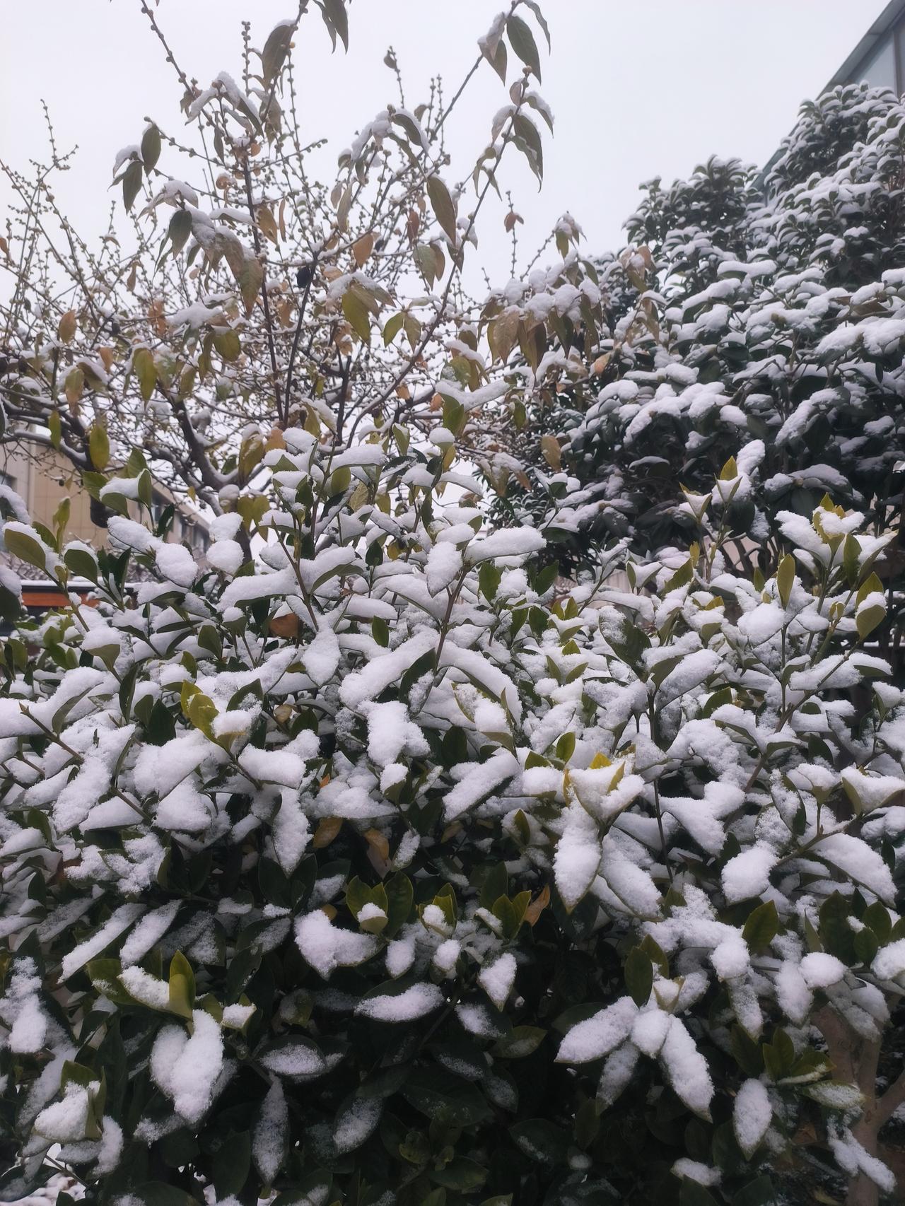 大雪节气之后,等了这么几天,雪还是来了。 昨天晚上开始,好友就在群里说下雪了,晚上九点多钟的时候又喊雪下大了。 像个孩子似的,这雪能下多大呢?天气预报上说,只是雨夹雪而已。气温这么高,落到地上也就融化了。 今天早上朋友圈里到处晒雪,看来真下的不小。 入冬以来,天气干燥,是应该下雪了。 赶紧起床,到外面拍雪景,担心晚了,就看不到了。 地面上几乎没有,只有在草木上面,车子上面有一些雪。 不能“哇塞,下雪了”,显得一惊一乍。于是拍了几张图片,学着古人拼一句: 老树长叹花不在,唤得飞雪枝上来。 下雪了