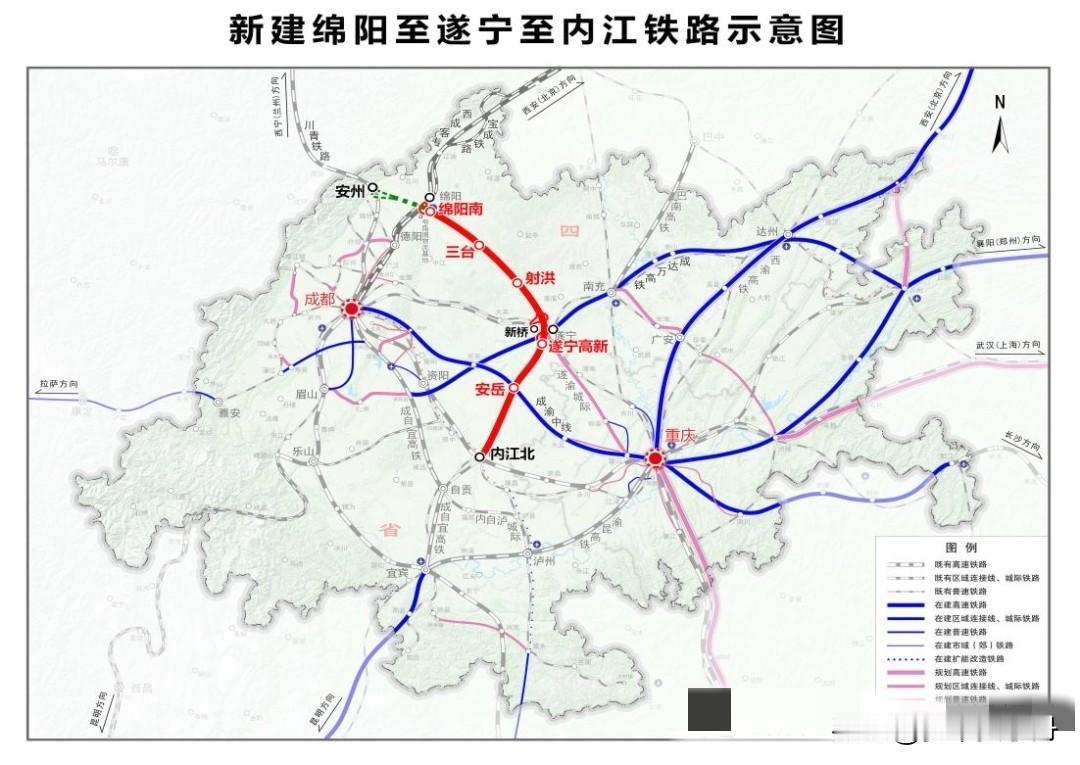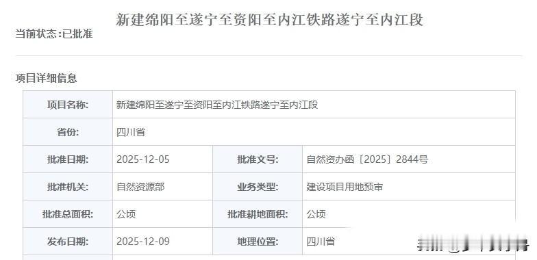 好消息!有望明年开工!两条高铁获批,看看经过你的家乡吗?下面我们来简单介绍一下: 一、新建绵遂内铁路遂宁至内江段 新建绵遂内铁路遂宁至内江段,线路全长107.797公里,计划总投资约206.3397亿元。作为一条客运专线,设计时速将达到250公里。全线共设车站4座,其中包括新建的安居站,利用在建的遂宁高新站和安岳站,以及既有内江北站。还将新建内江北存车场1座,并设立线路所2座。 二、永州经清远至广州铁路(湖南段) 永州经清远至广州铁路(湖南段),正线全长161.514公里,设计标准为新建双线高速铁路,设计时速高达350公里,将采用CRH和CR电动车组。沿线将设置4座车站,全部为新建站点,包括零陵站、双牌东站、宁远站和蓝山站。该项目投资概算总额约为296.66亿元。 让我们共同期待这聊天两条高铁早日建成通车,为大家出行带来更多便利。