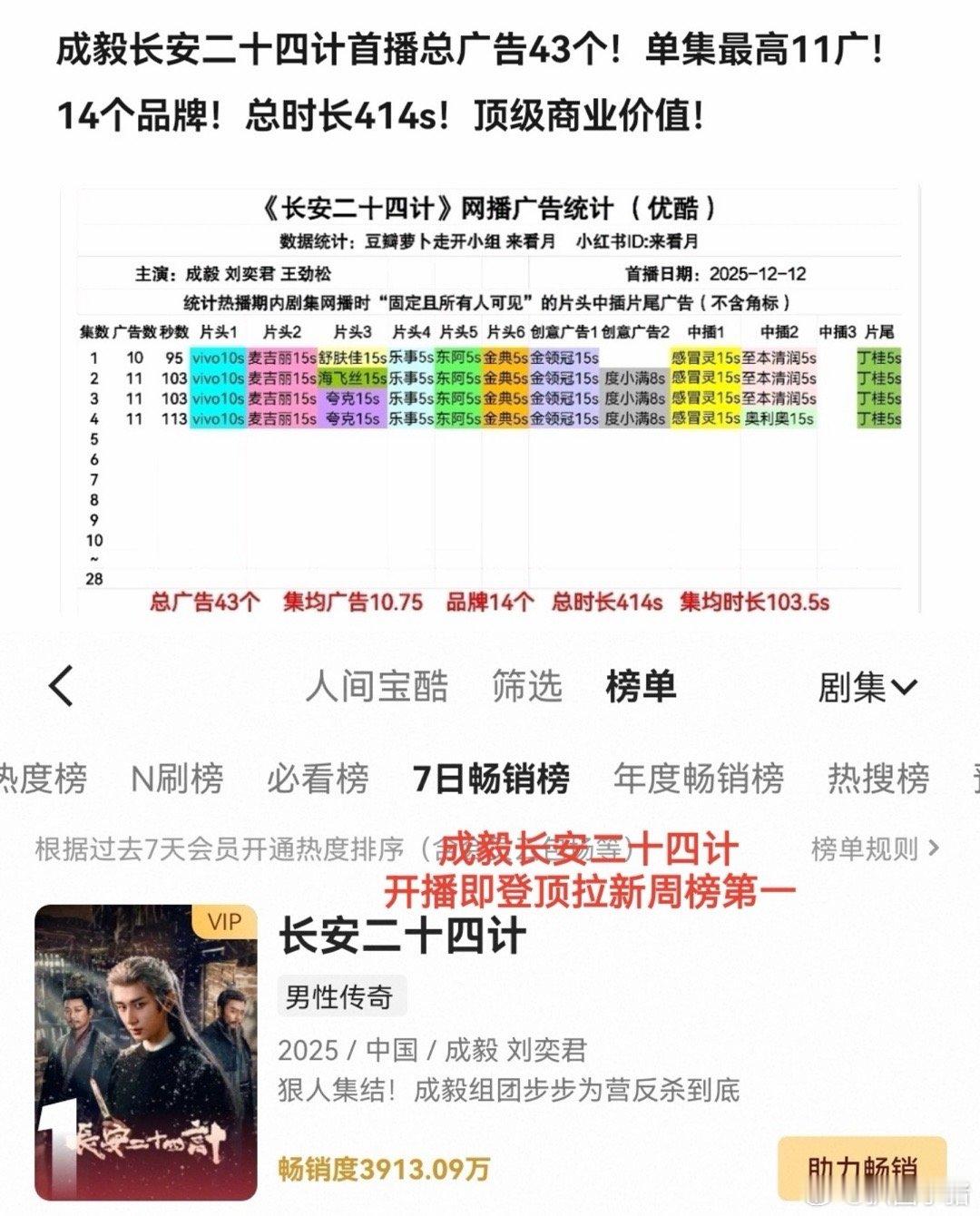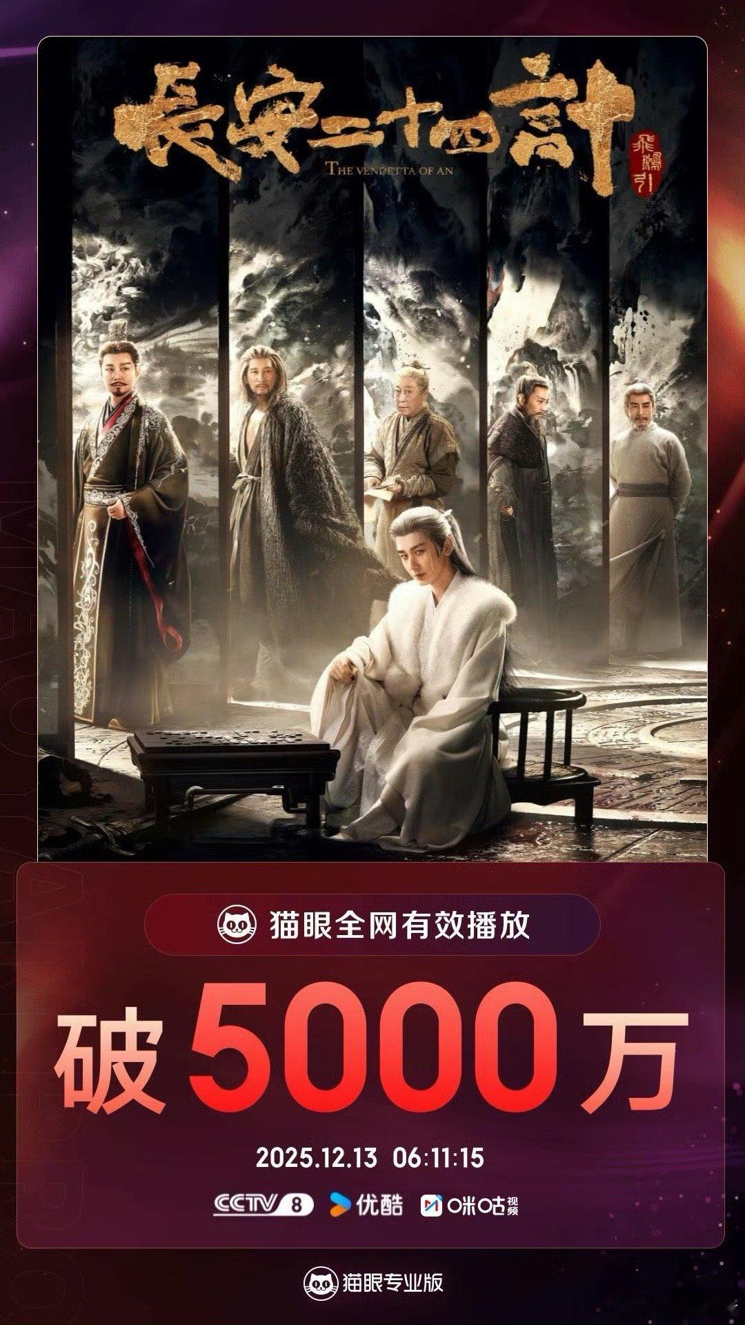 成毅长安二十四计全网有效播放量破5000万🔥优酷第一部首日全程锁v的剧,收视网播招商拉新全面爆开,成毅好牛长安二十四计全网收视登顶