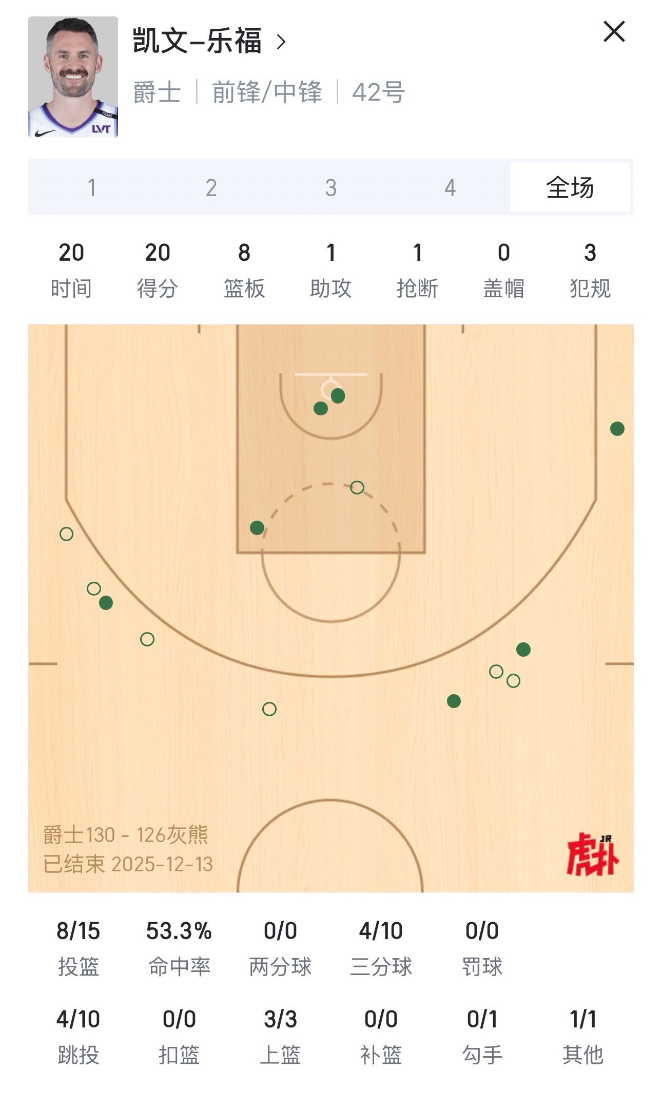 37岁老汉梦回当年,乐福时隔将近2年再度砍下20分,帮助爵士战胜灰熊。