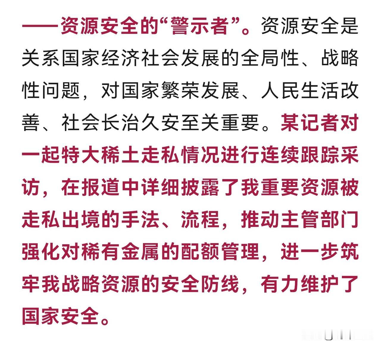 国家安全部发文 有记者曾经披露曝光了一起特大稀土走私案 也就是说在国家强力管制稀土的大背景下 还有内鬼在配合境外势力打乱国家的节奏 我相信这类人不会少,抓一个就必须严惩一个!