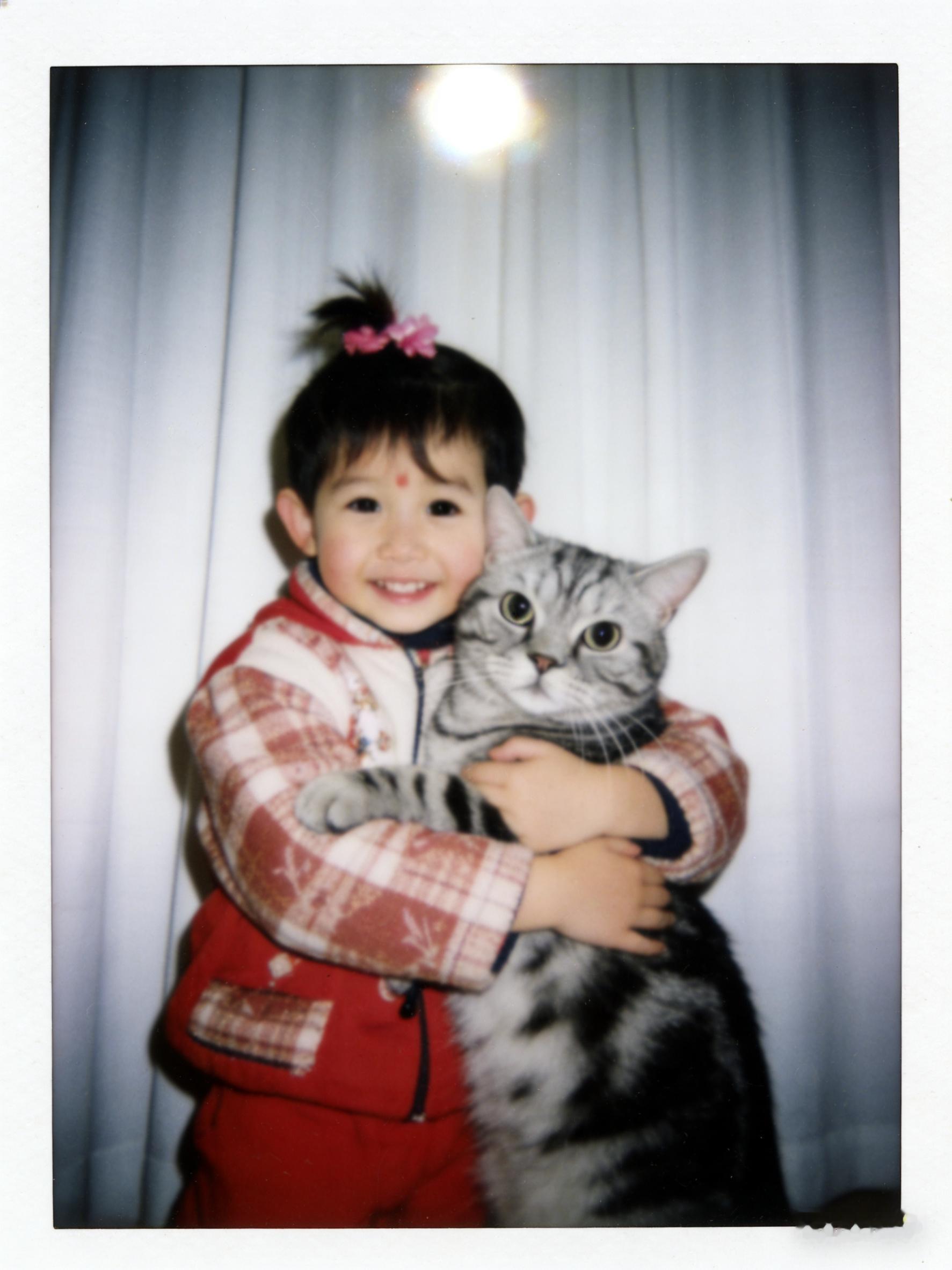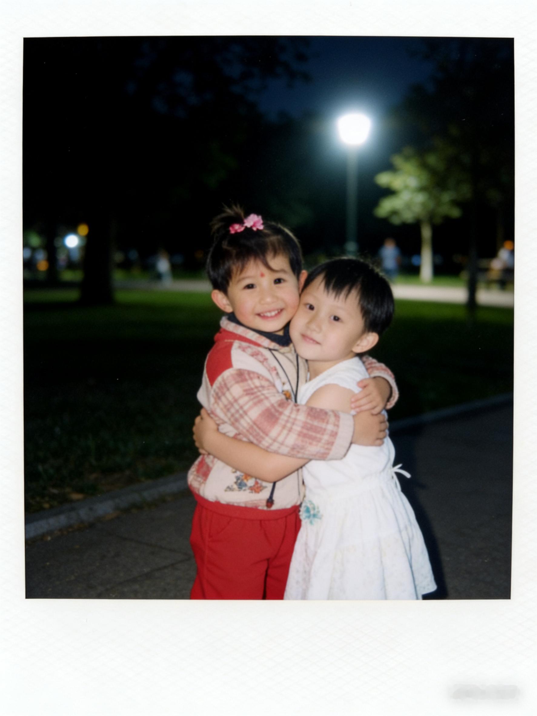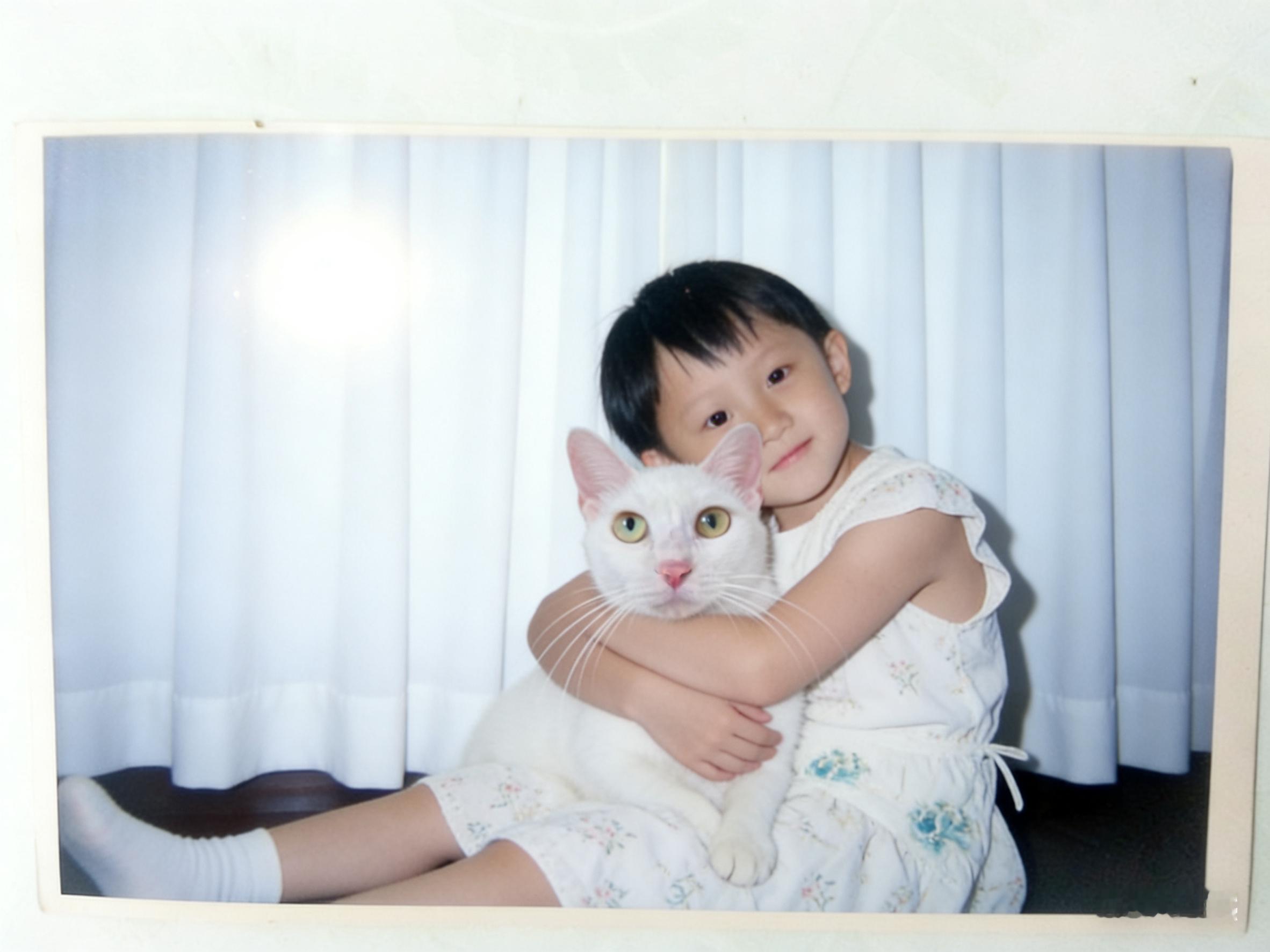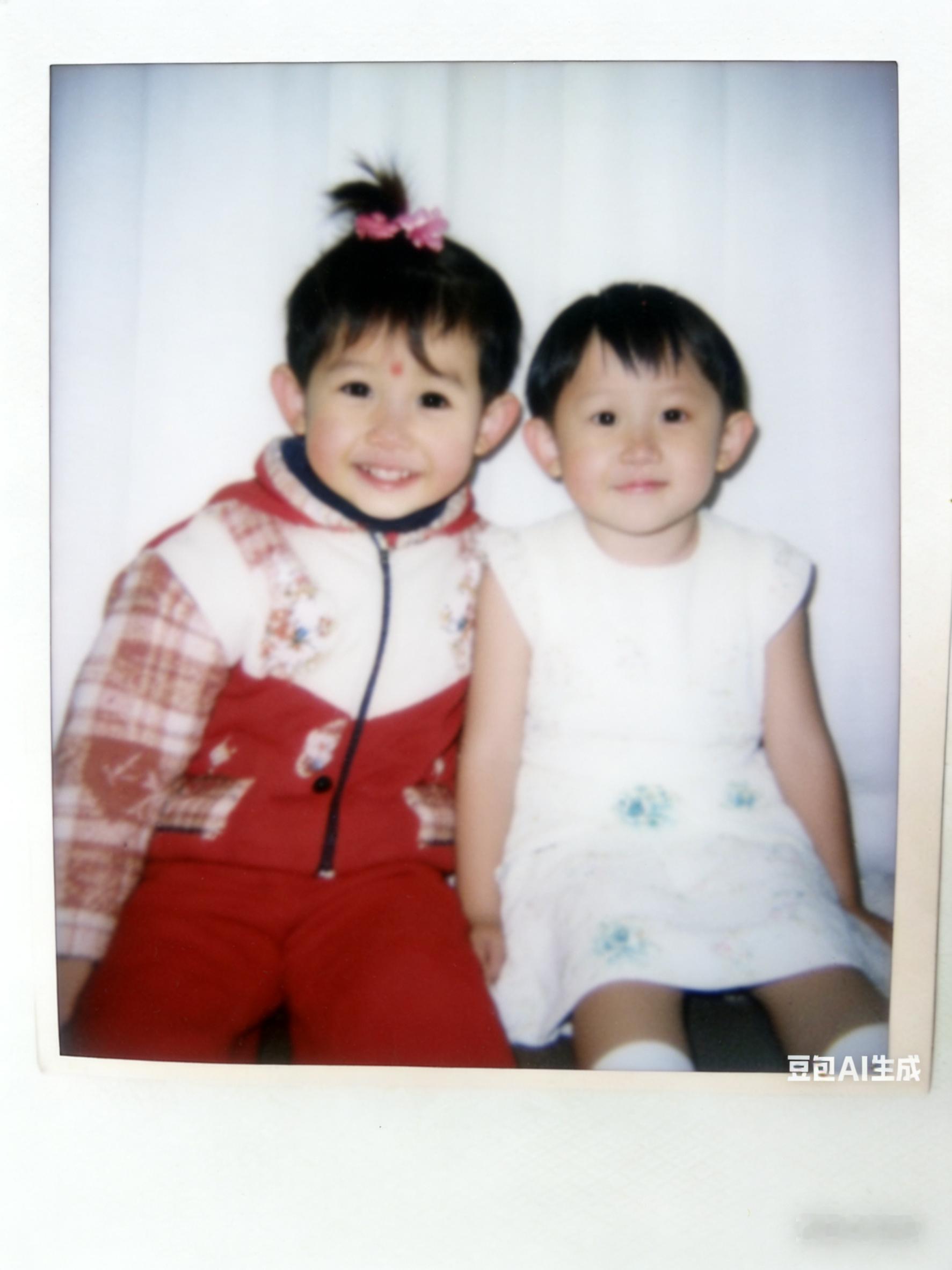 豆包这个可以让小时候的自己和家里宠物合照的功能太可爱了!昨天看到辣辣和帕老师玩了之后,我也去搜了一个口令试试。天呐!有点想掉眼泪啦!我还让豆包把我和老谢小时候的照片也“抱”了一下,能分得出来哪个是我吗?用的参考口令放在下面了,试试看好好玩豆包对话页面,选AI创作-选自己小时候照片+宠物照片,然后加这段口令:帮我生成一张图片,画面主体为图二中的小孩抱着图一中的小猫。小孩与小猫的面部细节完全保留,不做任何修改,与原参考照片一致;优先使用参考图中的服装,保证服饰细节准确。背景替换为白色窗帘,材质自然柔软,与人物过渡真实,无生硬拼接。整体呈现真实宝丽来(Polaroid)相机拍摄效果:暗室直闪光,光线均匀柔和;画面有轻微虚焦与颗粒感,清晰度整体一致,不突出单一焦点;色彩略暖、低饱和,禁止过度锐化脸部,避免数码或AI感。画面无额外主体或杂物,不添加装饰元素,保持原始比例。