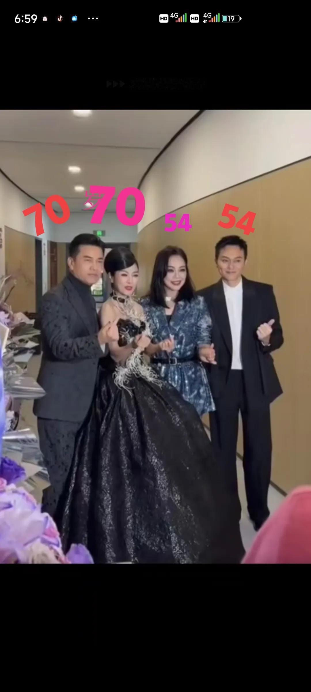 吕良伟70岁, 米雪70岁, 陈松伶54岁, 张智霖54岁。 都是这么大年纪的人了, 70岁的那俩人, 看着像中年人, 没有一点老人模样, 太会保养了。